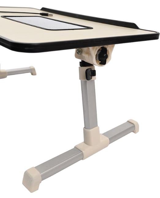 Additionally, the tilting tabletop design allows users to adjust the viewing angle to suit all sitting, lying, and standing positions. It helps relieve ailments such as back pain caused by prolonged sitting and provides a healthy working posture. The table is designed with a built-in fan, which helps protect your laptop from damage caused by overheating. Its foldable design makes it easy to store, and it's lightweight enough to carry with you wherever you go. Don't hesitate to buy it.