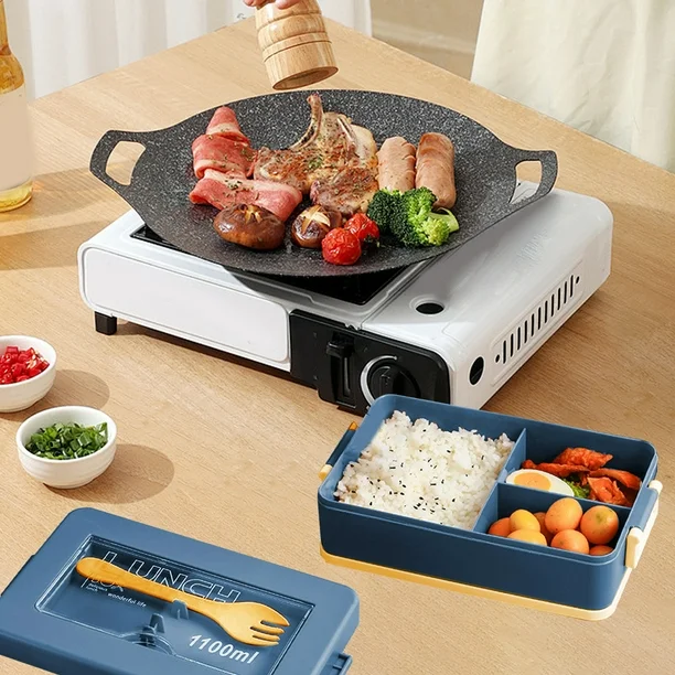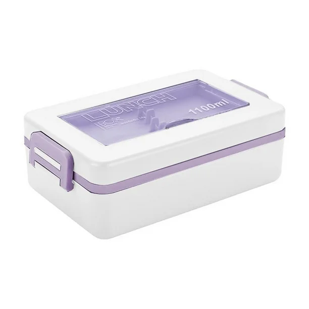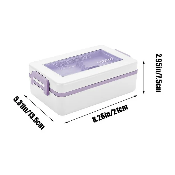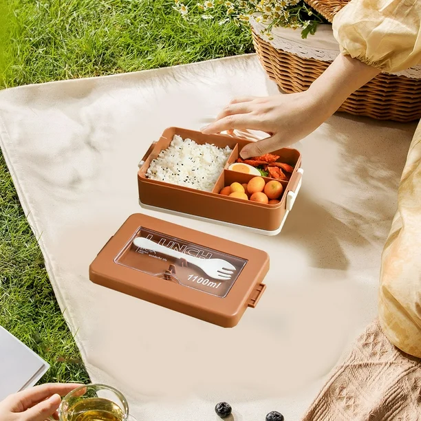 Adult Lunch Box 1100ml 3 Compartments Student Sealed Plastic Lunch Box Adult Lunch Box with Spoon and Fork Leak Proof Microwavable Features: Quantity: 1pc Material: Plastic Net weight:334 g/0.74 lb Gross weight:380g/0.84lb lb Product size:22.5x13.5x7.5 cm/8.86×5.31×2.95 in Packing size:24x15x9 cm/9.45×5.91×3.54 in Applicable scene: home,office,school,outdoors Product Description: Good quality food grade material: Our lunch box and accessories are made of Good quality food grade plastic material. The lunch box is odorless, drop-proof and made of good material, making it a meal prep container for kids and adults. 3 Compartment and with utensil set: The reusable meal prep box can meet your needs. Our 1100 ml (7.76 x 7.76 x 2.36 inches) lunch box has 3 compartments for more balanced meals and nutrition and easier to use. Leakproof Bento Lunch Box: The thickened strip on the lid provides a good airtightness for the kids' lunch box,prevents food smell from leaking, and also prevents the compartment food from penetrating each other. The double buckle design prevents food from leaking into the bag. Easy to clean and heatable: The inside of the lunch box is no dead space, easy to clean . Our lunchbox can be heated in the microwave, but remember to removals the lid to guard against deformation caused by high temperatures. Multifunctionality: the lunch box is small, lightweight and easy to carry,can be used for eating, but also can be used for snacks and vegetables and other food, multi-purpose. Package Content: 1x bento box