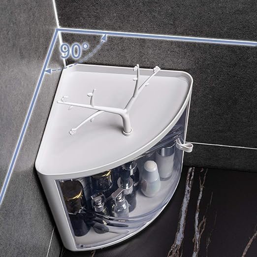 MULTIFUNCTIONAL CORNER STORAGE RACK - Our easy to use triangular storage rack. The front of the shelf is covered, it can effectively prevent dust and keep stored items clean. It's not like ordinary storage racks. It's just as easy to accumulate dust.