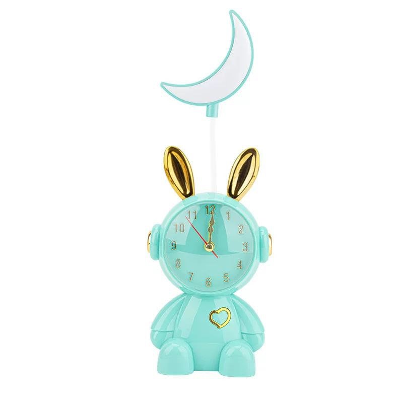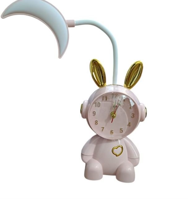 Desk Lamp - 3 in 1: Elegance, Lighting, and Alarm A charming desk lamp that combines lighting, a clock, and an alarm in one elegant and distinctive design. Features: Attractive design for children and adults Built-in clock and alarm for greater convenience Crescent-shaped LED bulb - Rechargeable High-quality materials and completely safe to use Ideal for an office, bedroom, or study table