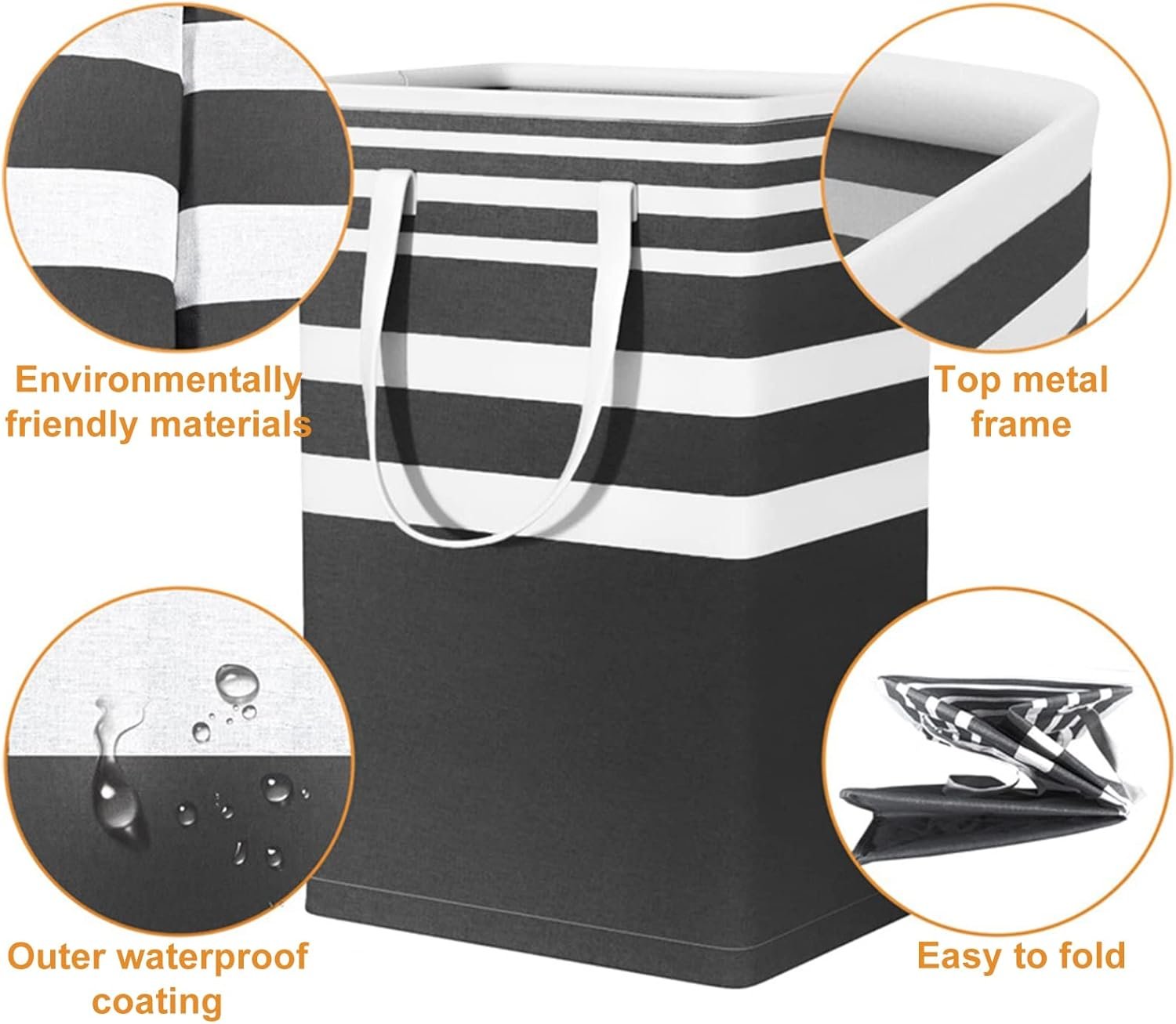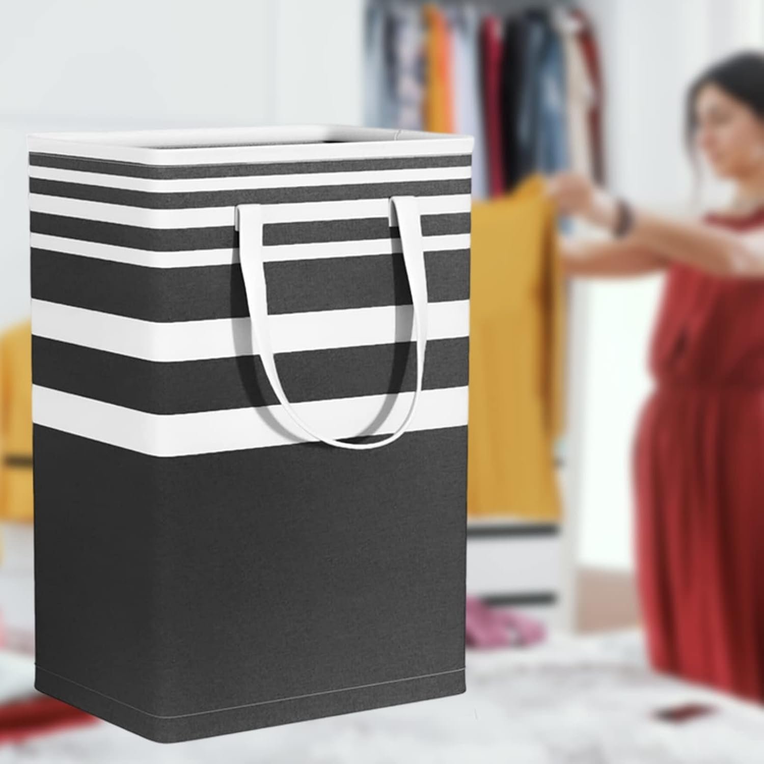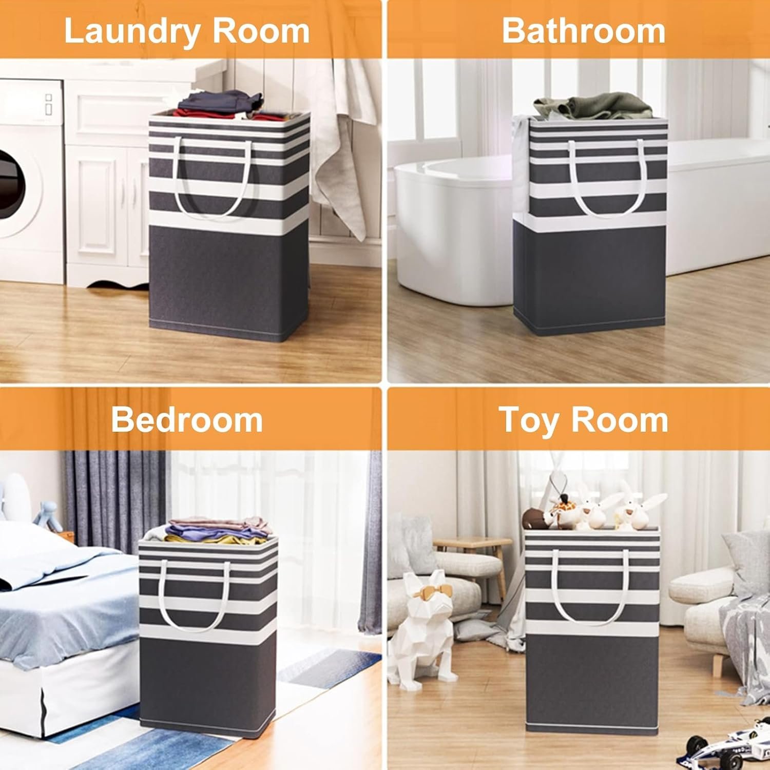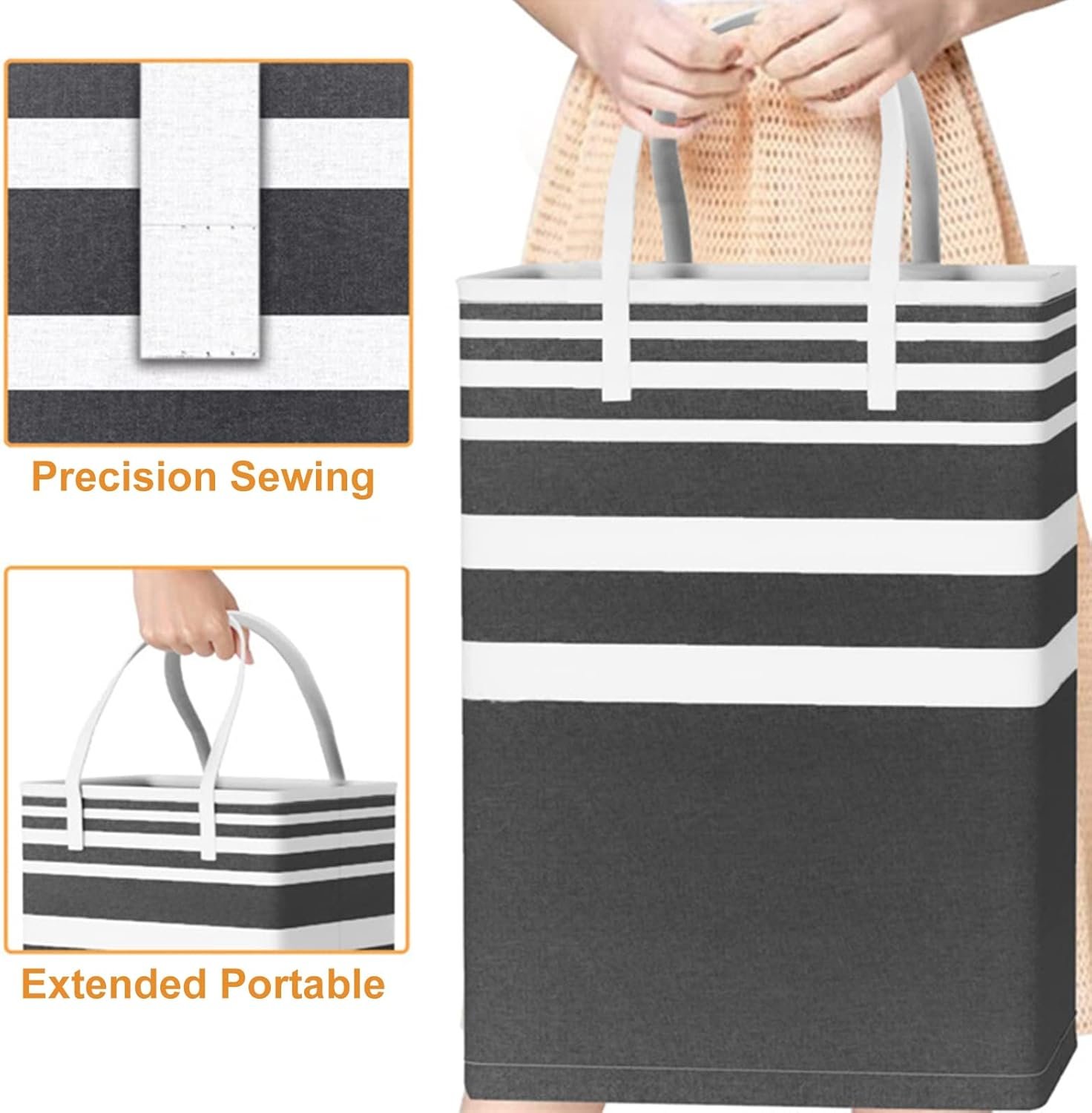 ✅UPGRADED SIZE & CAPACITY: This clothes basket has perfect size measuring 40x30x62cm and large capacity 75L a size that's just right for everyday use. Two long handles, one on each side of the tall hamper, are reinforced with durable tight stitching to prevent tearing.
