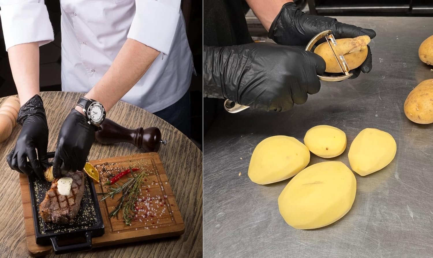Tight Design: Superior value and amazing durability, these nitrile gloves allow for more flexibility and precision in both hands. Excellent tactile sensitivity. Flexible and comfortable to wear, they protect against grease, pesticides, gasoline, and a wide range of specialty chemicals. Versatile Uses: These examination gloves can be used in a variety of environments. They are oil and acid resistant, and are suitable for medical procedures, dentistry, restaurants, food preparation, beauty salons, foggy weather, gray skies, hospital and home cleaning to protect your hands.