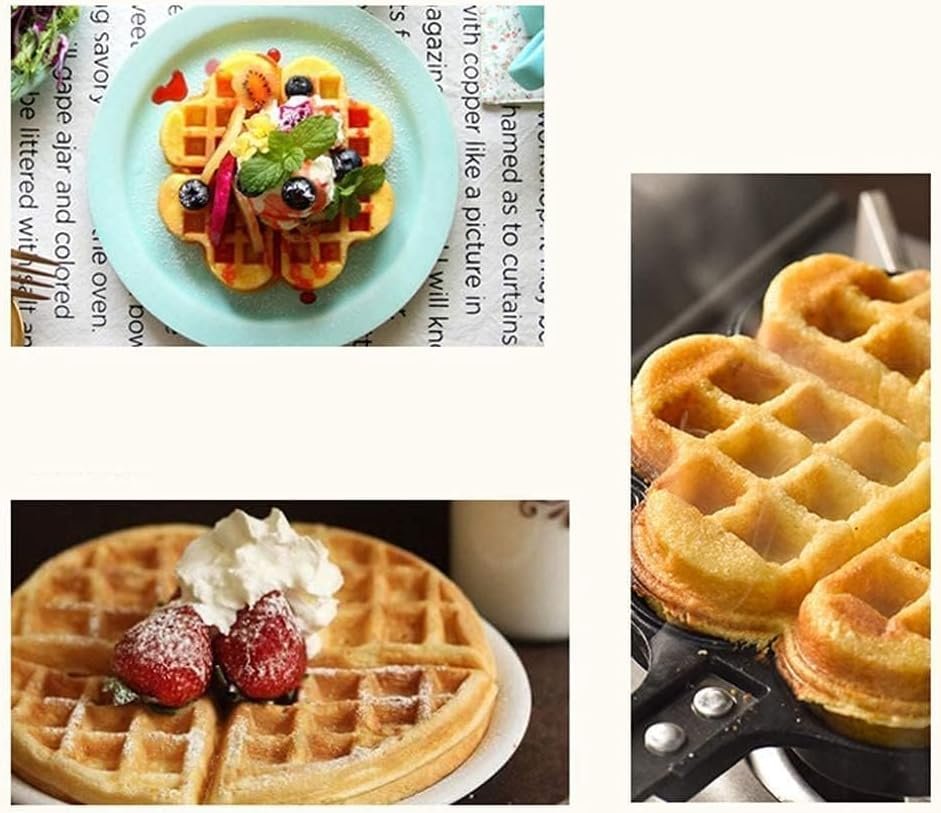 FOOD GRADE MATERIAL Crafted from high-quality aluminum for even heat distribution, our frying pan ensures there are no hot spots during cooking. NON STICK COATING The nonstick coating guarantees easy flipping of crepes, making food release and washing a breeze. DUAL HANDLE DESIGN Ergonomically designed handle with heat resistant treatment, compact structure, comfortable grip and labor saving operation. EASY TO STORAGE This waffle pan has hanging holes and safety buckles at the rear, which are attached with rivets for easy storage and save space in your kitchen. FLAT BASE PAN BODY The pan body adopt flat bottom designed with uniform heating, high heat transfer efficiency and stable performance, suitable for home and kitchen use.