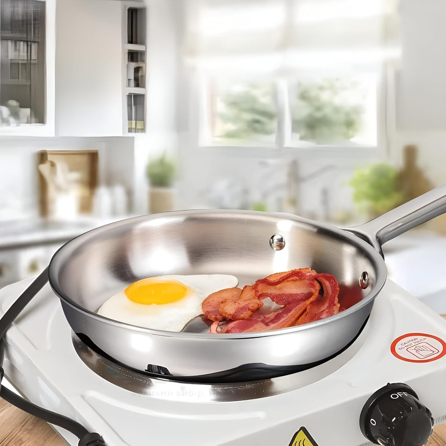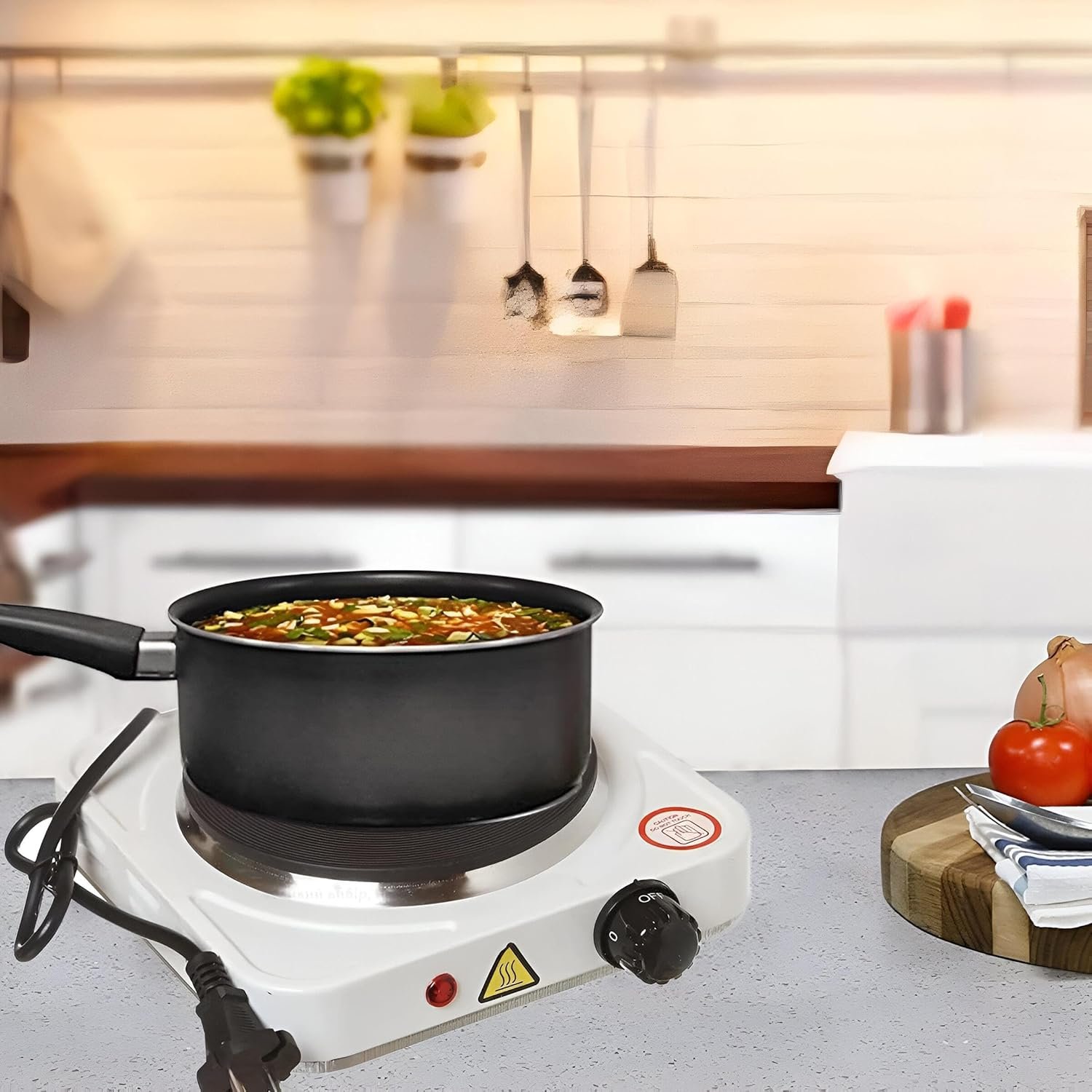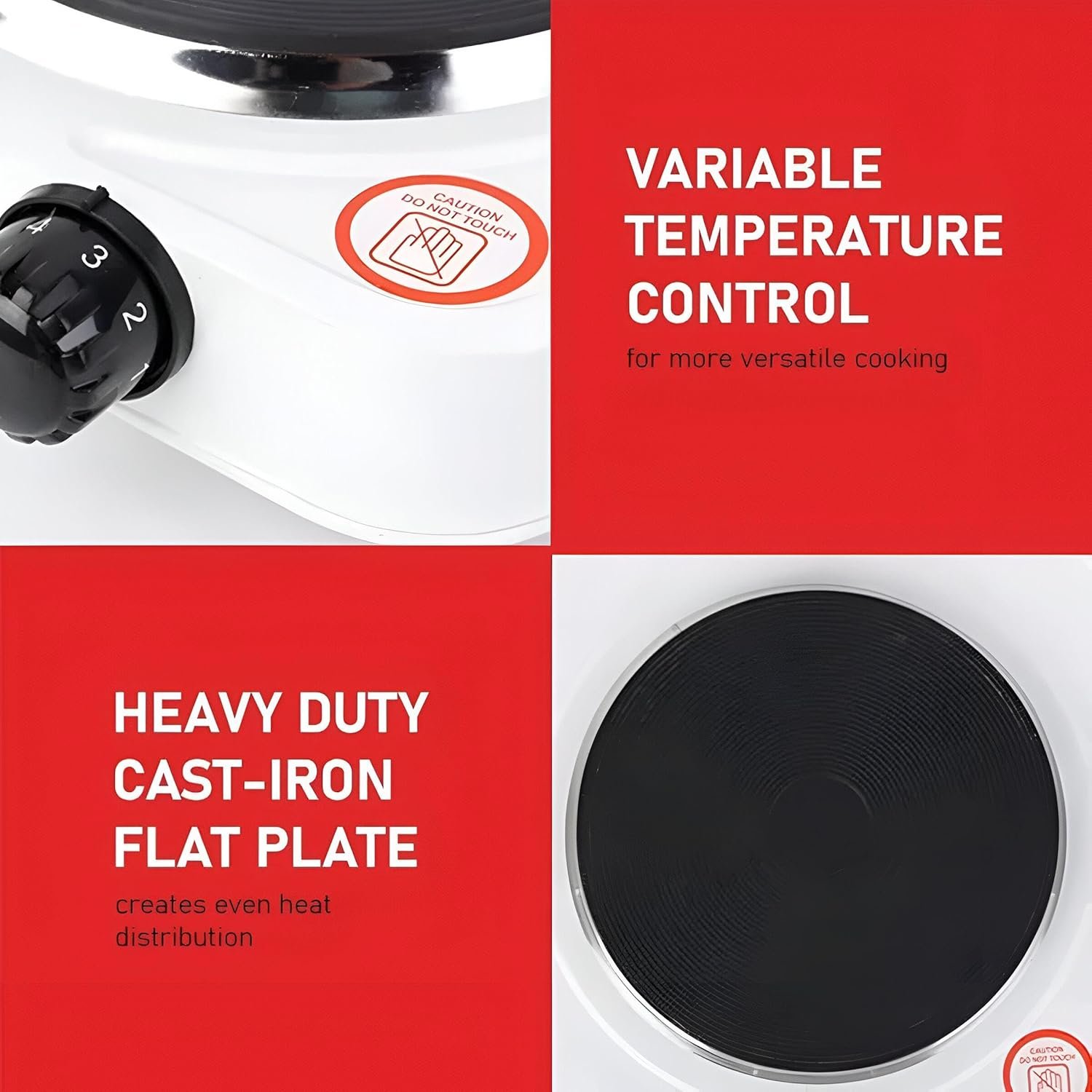SPILL-RESISTANT SURFACE - The hard surface design prevents food from spilling inside the hot dish, keeping clean and reducing the risk of burns from accidental spills, thus promoting a safer cooking environment. EXTRA DURABLE - Made of extra strong cast metal with a solid surface design that prevents food from spilling inside hot plate. This ensures longevity and durability, making it a trusted kitchen companion. Expand Your Kitchen - Its compact design takes up a little space at the table and can be easily moved, allowing you to pack it up and take it with you on trips, making the storage convenient and expanding your cooking possibilities. Extremely COMPATIBLE - Suitable for all types of utensils and pans, including glass cookware and aluminum up to 6" in size. This adaptability ensures that it can be used with a wide variety of kitchen utensils, promoting its usability. EASY TO CARRY - The compact and lightweight design makes it easy to transport and store. Ideal for small kitchens or outdoor cooking adventures, it provides flexibility without sacrificing performance.