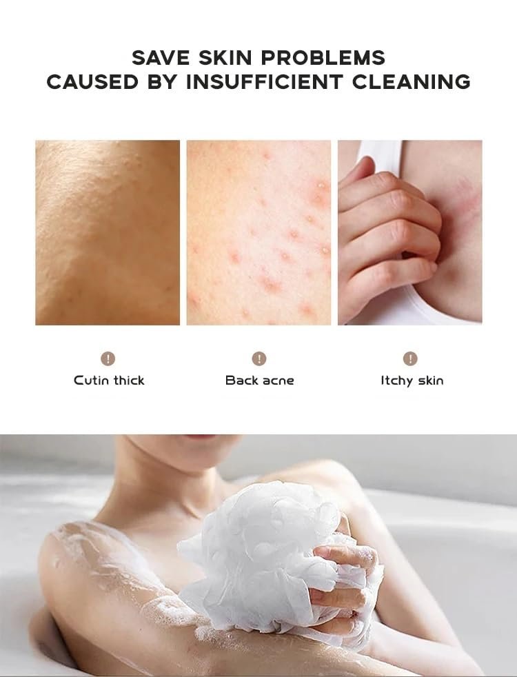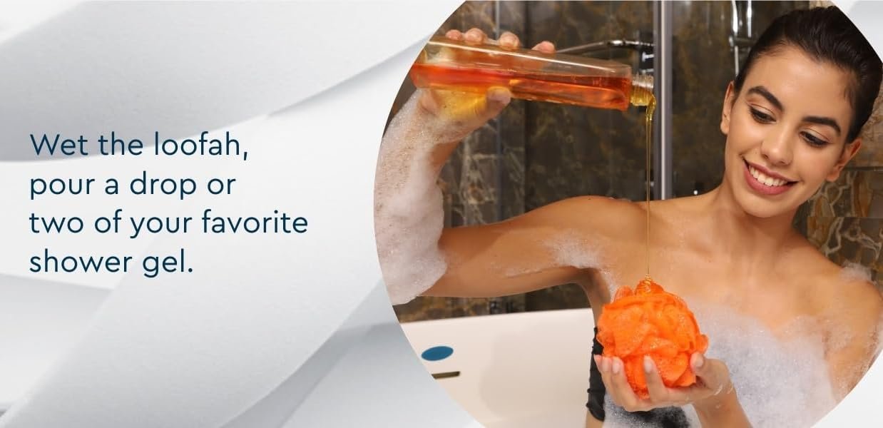 【Rich Lather】The appropriate size and weight, along with the fine, dense mesh of the loofah bath sponge, ensures good stability and creates a rich lather with just a small amount of shower gel or soap. 【Easy Cleaning and Drying】Shower gel and dirt left on the loofah sponge can be easily removed. The long cord design also makes it easy to hang and dry, keeping your bath sponge dry and clean for a long time.