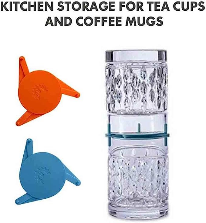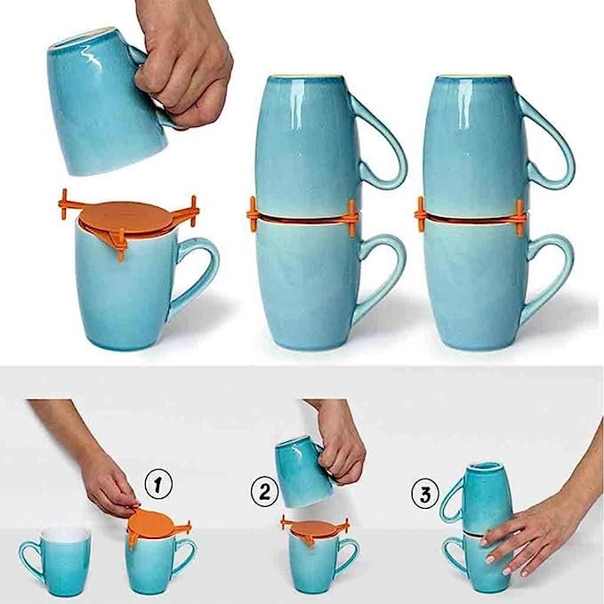 Very easy to use, just place one Stacker on top of a coffee cup, then set another one upside-down, right on top. Give the Stacker a gentle squeeze to adjust to the size, and your coffee cups are safe and sound, in just the right amount of space. Very practical kitchen organization and storage gadget.