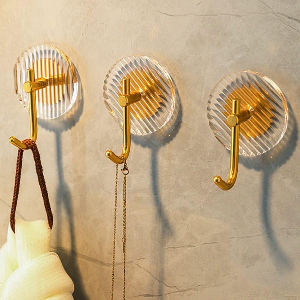 ✅【Elegant Modern Finish】The gold-striped design of these acrylic hooks brings a touch of sophistication to any space while blending perfectly with both minimalist and decorative home styles. ? ✅【Super Strong Adhesion】Equipped with industrial-strength adhesive pads, these hooks can hold heavier objects securely on various surfaces like tiles, wood, or painted walls. ?