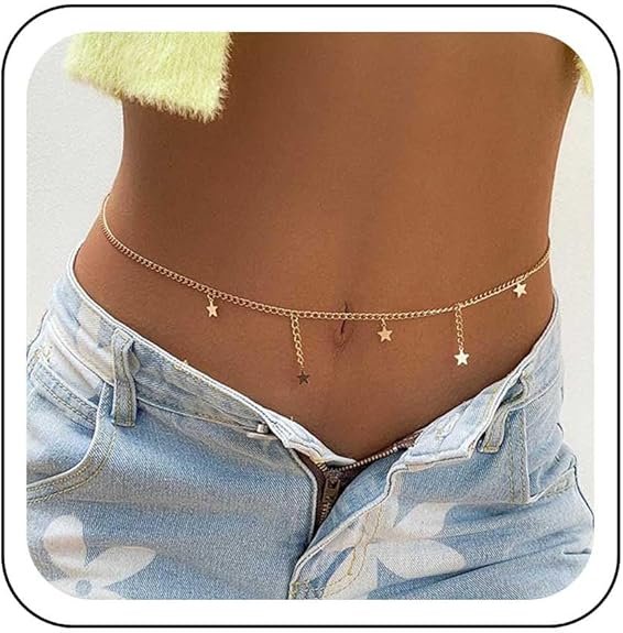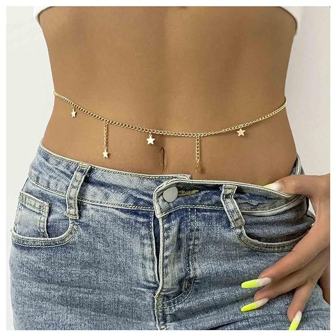This elegant gold bikini chain enhances your figure. The body chain is made of high-quality alloy, plated with a shiny finish that won't fade easily, is hypoallergenic, and won't irritate your skin. The beach bikini belly chain, as shown in the pictures, has a lobster clasp on the back, is adjustable and easy to wear, and is suitable for most women and girls. The summer star waist chain can be paired with bikinis, evening dresses, and more, or given to your friends as a beautiful gift.