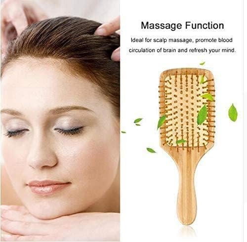 Premium Bamboo Detangling and Massaging Non-Static Hair Brush for all Hair Types All Wood Bristle Teeth Prevent Hair Issues Premium quality bamboo hairbrush made with gentle, durable, and anti-static wooden bristles. They are less likely to break the hair when combing. High quality bamboo bristles stimulate blood flow into the scalp and can help improve hair growth, prevent, hair loss and dandruff, and naturally condition your hair by evenly distributing natural oils in hair shaft. Approximate hairbrush size 22.5 x 8.5 cm High Quality Wooden Hairbrush with All Wooden Bristles and Massaging Airbag Natural Anti-Static Paddle Brush for Wet and Dry Hair Made with high quality smooth texture and anti static wood. Wooden bristles will gently massage the scalp and improve blood circulation reducing headaches, hair loss, or dandruff. Excellent for scalp stimulation and all hair types including long hair. Excellent hair care gift for friends and family.