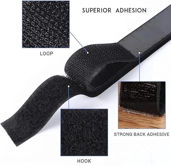 Strong hook and loop fastener with 2M hook and 2M loop strips, each 2.5CM wide, ideal for multipurpose DIY applications in home or office. Features durable adhesive backing for easy peel-and-stick use—no tools or sewing required for installation. Reusable and removable, offering long-lasting performance without damaging surfaces or leaving sticky residue. Made from premium black nylon for a professional finish and reliable grip across wood, plastic, metal, and glass. Perfect for mounting, crafting, labeling, or temporary fastening—ideal for home DIY projects, office setups, and creative uses.
