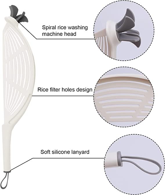 Food Grade Material - the Kitchen Rice Strainer made of great PP material, which is durable and reuseble. Will not be easily deformed after repeated use, stable and firm, the head can be disassembled for easy cleaning