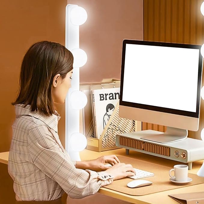 4 lamp beads effectively enhances the surrounding brightness provide enough brightness during live streaming and displays more details during makeup. Combination of left and right lights for better results.