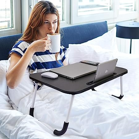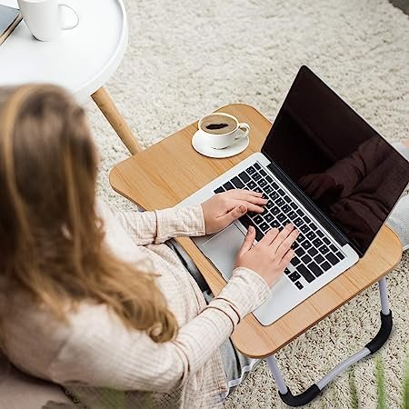 【BOTTOM NON -SLIP DESIGN】 Rubberized edge seal on the bottom of the table, refuses to slide, provides comfort and stability when you dine and work. You can also put the table on an ordinary table and stand up to work, which will help relieve neck and shoulder pain.