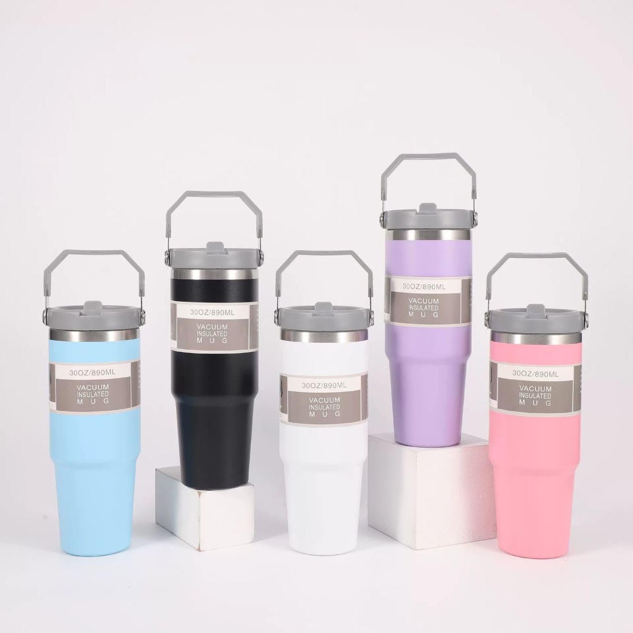【Excellent Function】Relax and enjoy every sip of your favorite beverage. This 30oz Tumbler with Straw Lid features extra inner walls and vacuum insulation to keep your drinks hot for 8 hours and cold for 12 hours.Perfect for hot or iced coffee, tea, cold water, juice, wine, beer, milkshake, or a smoothie. 【Easy to Carry】The 30oz Stainless Steel Coffee Travel Insulated Cup Mug can be easily placed in the car cup holder, and the one-handle design allows you to easily take out the mug and drink. The Thermal Mug is 9.8in high, 3.5in wide. The wide opening design makes cleaning more convenient and easier. Large capacity thermal mug is suitable for swimming, sports, travel, road trips, BBQ, camping, parties and more. 【High Quality Material】The travel mug is made of high quality 304 stainless steel, high hardness,strong resistant to pressure,which is strong and durable, rust-proof, heat-retaining and easy to clean. The lid is designed with drinking holes for placing straws or drinking directly.