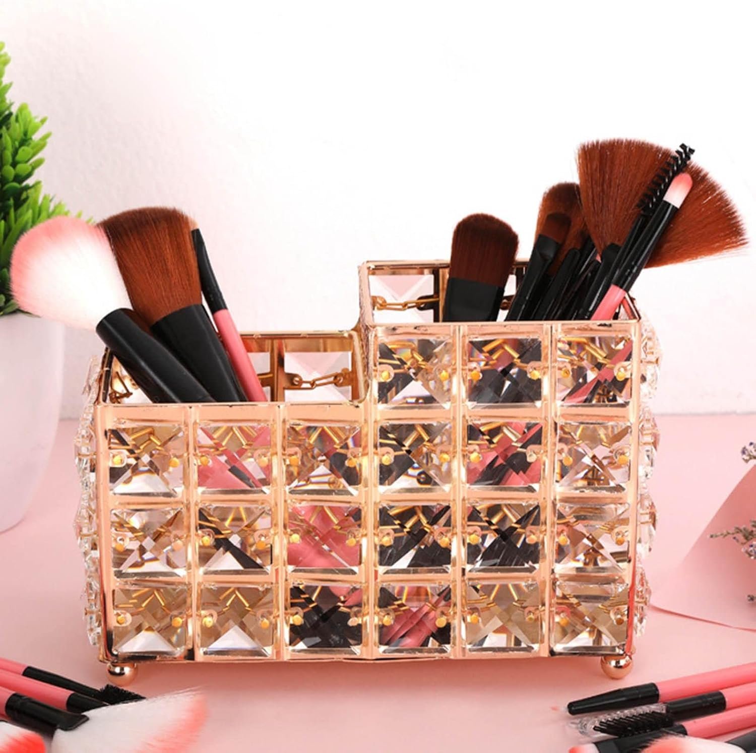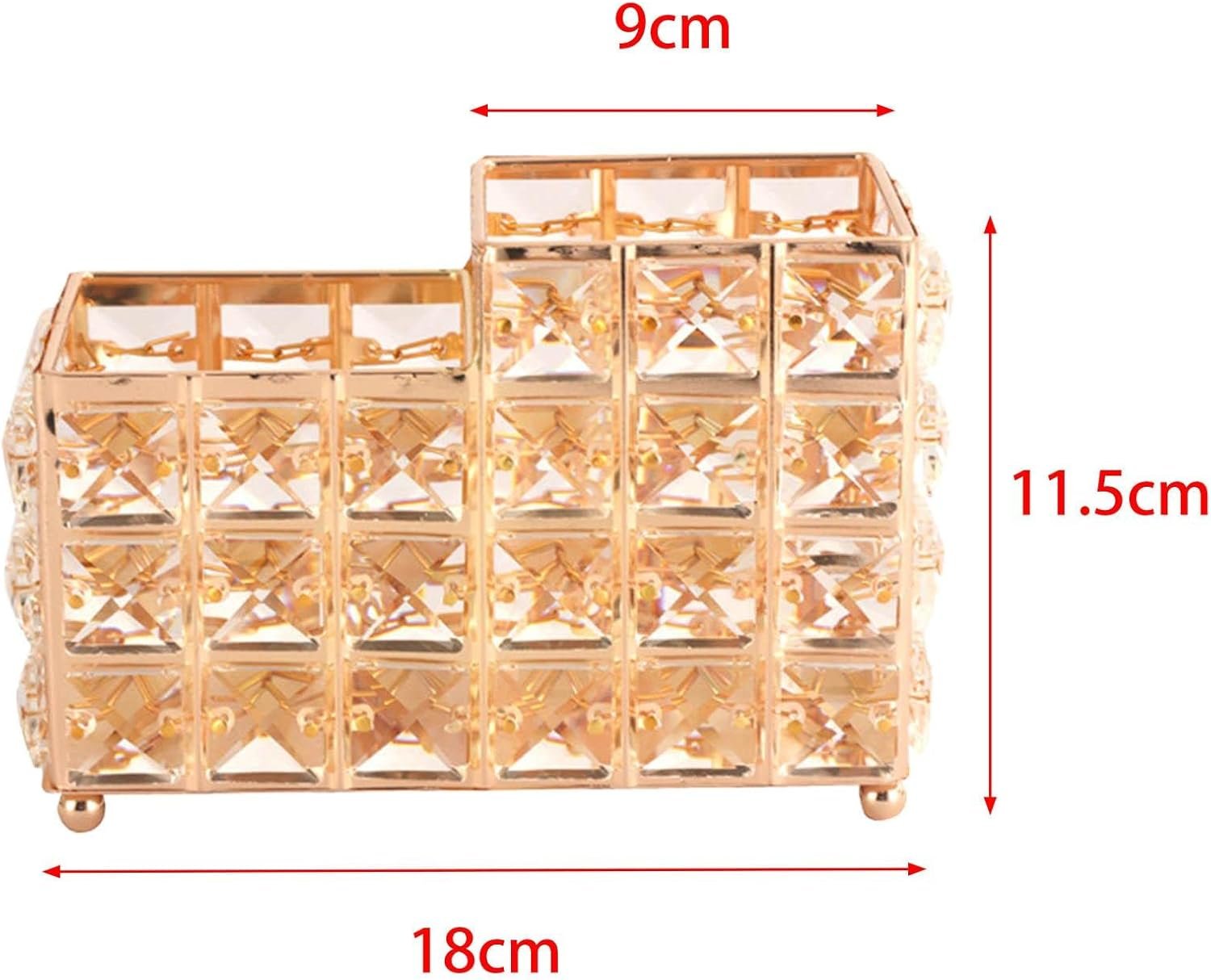 * Crystal Makeup Brush Holder: Made of high-quality iron and crystal, it is durable, elegant, and exquisite, with a creative design. * Great Gift: Perfect birthday and anniversary gifts for friends, family, women, girls, and others. * Desktop Organizer: The "Cosmetic Storage" is suitable for storing makeup brushes, cosmetics, vanity items, toothbrushes, eyebrow pencils, lipsticks, stationery, and candle holders.