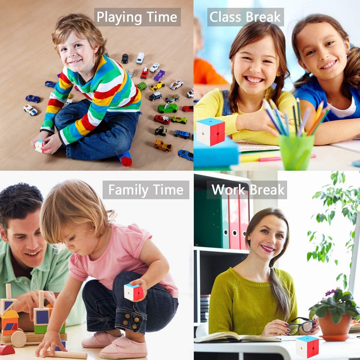 magic cube smooth fast twist for Competition with a stand. ** WELL MADE: Size is 55.5x55.5x55.5mm, weight about 73g. It is made of high-quality ABS plastic, durable, PVC stickers, good hand feeling. ** ALL NEW ANTI-POP DESIGN: Large fillet design, the internal use of a new steel card slot, can effectively prevent the steel ball out