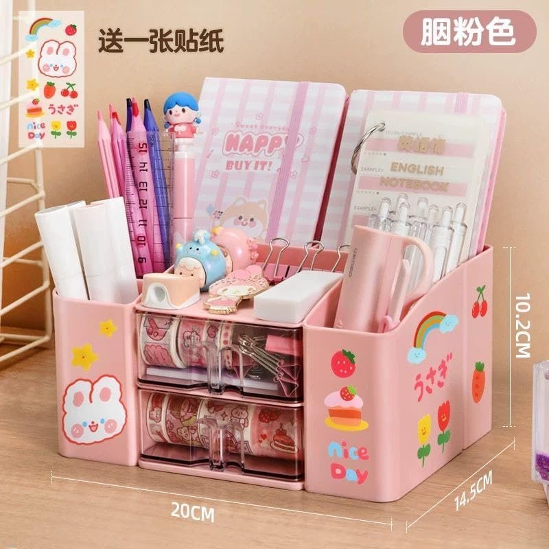 Pen holder desk: with the desk organiser, you can make everything clear at a glance, say goodbye to messy desks, the best choice for home offices, ensure a tidy environment and save space. Organiser desk: the children's pen organiser comes with 5 compartments and 2 transparent drawers, you can organise and store your daily things. Such as pens, scissors, sticky notes, etc. The pen holder desk is the best choice to keep your desk clean and tidy. Desk accessories: desk organiser is made of high-quality plastic, with smooth, burr-free edges, transparent drawers, easy access to items and reusable. Desk organiser drawers: the size is 19.5 x 14 x 10 cm. It is the perfect size for your desk, maximizes your vertical space and helps you save space. Also the best gift for your students and friends. Multifunctional pen organiser: this multifunctional desk organiser for children can not only be used to store various office supplies on the desk surface, but can also be used as a cosmetic organiser. You can put lipstick, combs and other daily necessities in it.