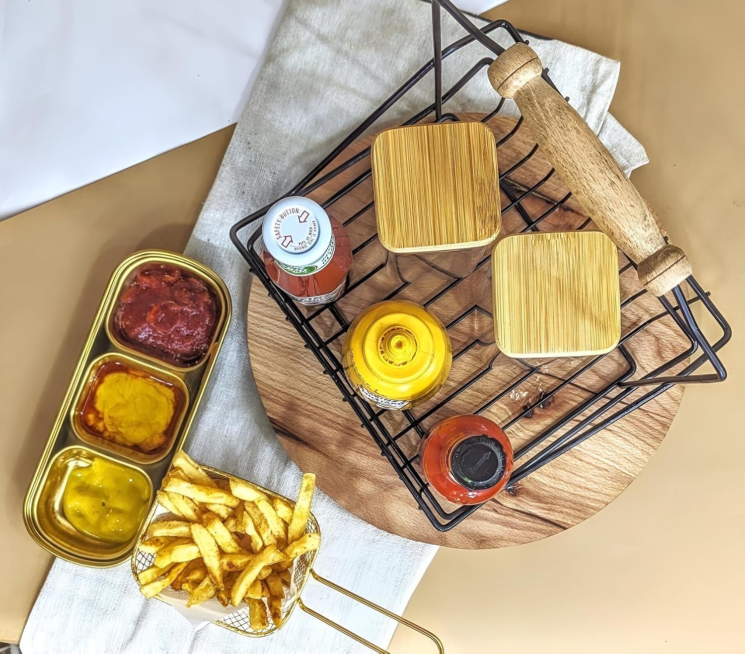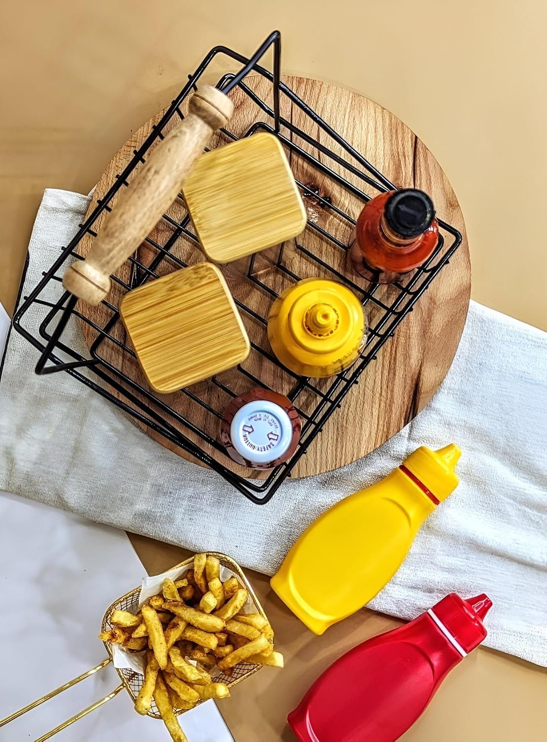 Combining function and aesthetic appealing, this sauce holder makes a great addition to any dining or kitchen table. It complements various decor styles, from country to modern, enhancing the overall dining experience.
