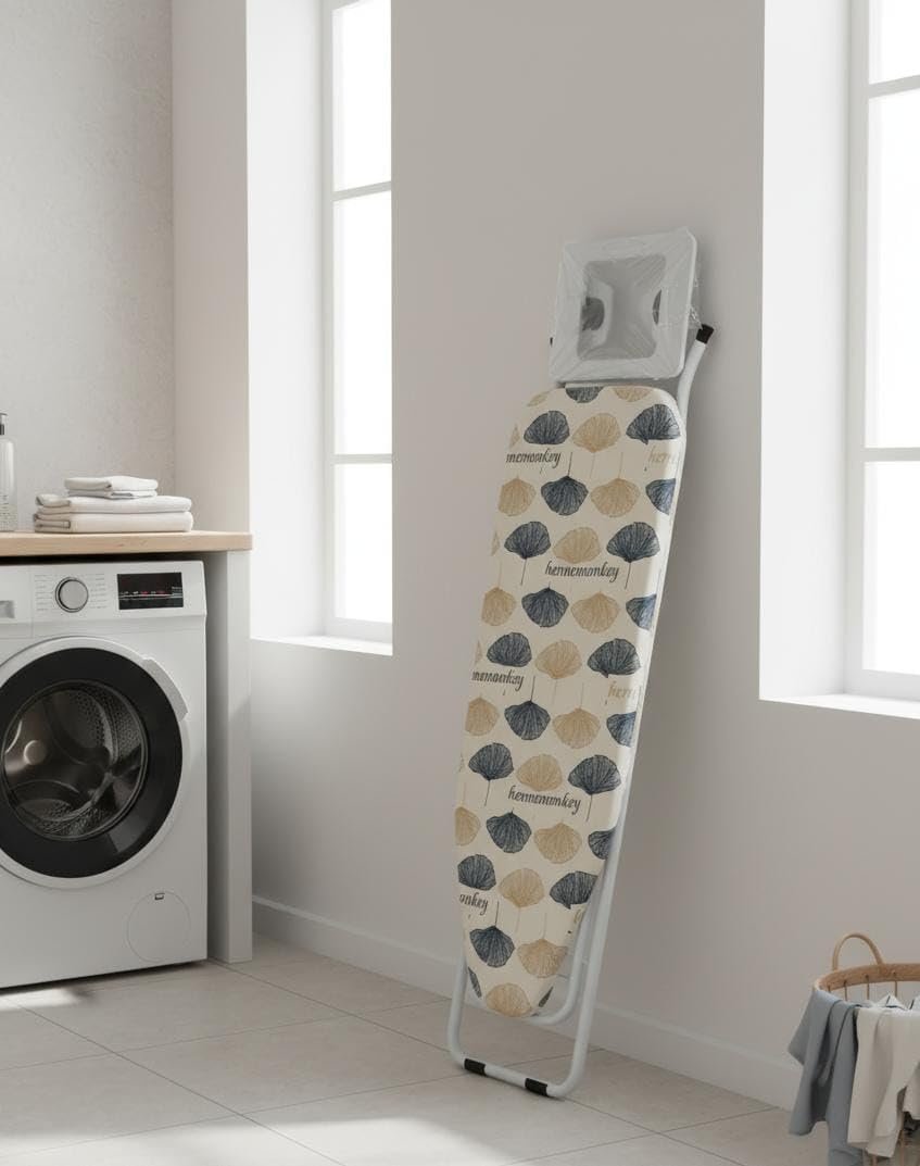 Upgrade Your Ironing Experience with This Modern, Compact Board! Tired of flimsy ironing boards that wobble and take up too much room? Introducing the smartly designed and stylish Foldable Ironing Board. With its practical dimensions of 110x33 cm, it provides the broad surface you need to finish your ironing tasks quickly and effectively. Why Choose Our Ironing Board? Built to Last: Constructed from high-quality materials with a solid metal base, designed for longevity and to withstand years of regular use. Aesthetic Appeal: The cover's appealing leaf print in neutral tones adds a decorative touch, making this board one you won't mind keeping out! Effortless Portability: The quick-fold feature allows you to carry and move it with ease, simplifying the process of setting up and packing away. Versatile Use: Suitable for all garment types and fabrics—from delicate silks to heavy cottons—its smooth surface ensures flawless, wrinkle-free results every time.