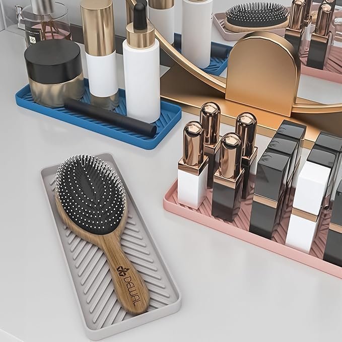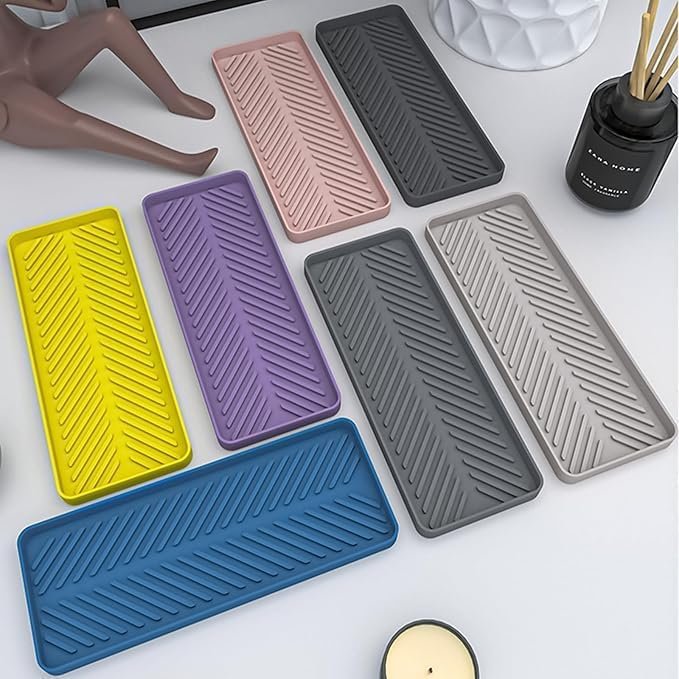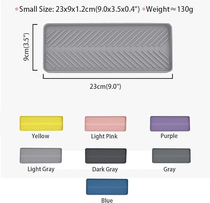 【Unique Design】Featuring 45-degree double rows of raised ridges and raised edges, the design is unique and makes your home decoration look perfect. It prevents water from spilling and helps dry wet items better. The non-slip bottom keeps the silicone organizer tray stable on your sink or countertop.