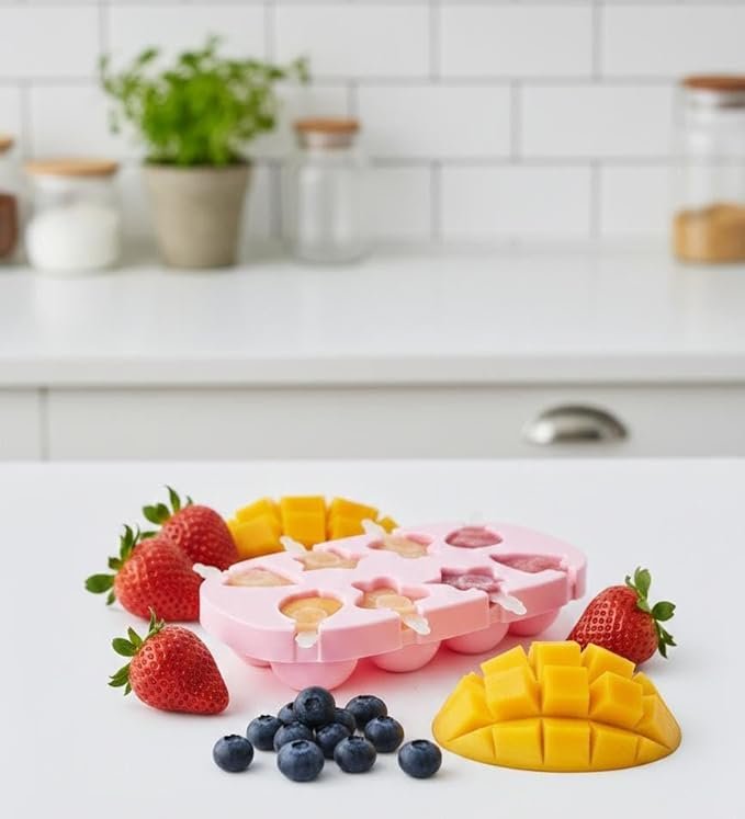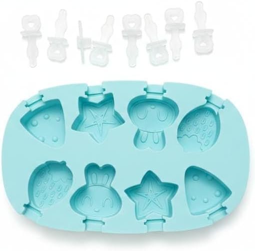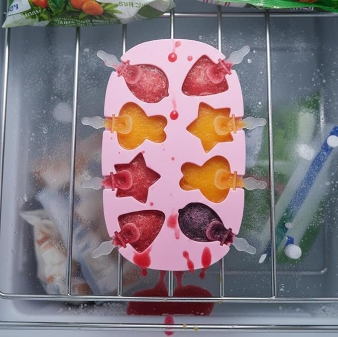 This versatile, food-grade silicone popsicle mold is designed to create fun, bite-sized frozen treats right at home. Featuring eight individual cavities in charming shapes—including stars, strawberries, and bears—it allows for a creative variety of flavors and colors in every batch. The soft, flexible silicone material ensures that popsicles can be popped out effortlessly without breaking, while the reusable plastic sticks are designed with a wide base to catch drips and keep little hands clean. Its compact, flat-lay design is perfect for crowded freezers, providing a stable base that prevents spills during the freezing process.