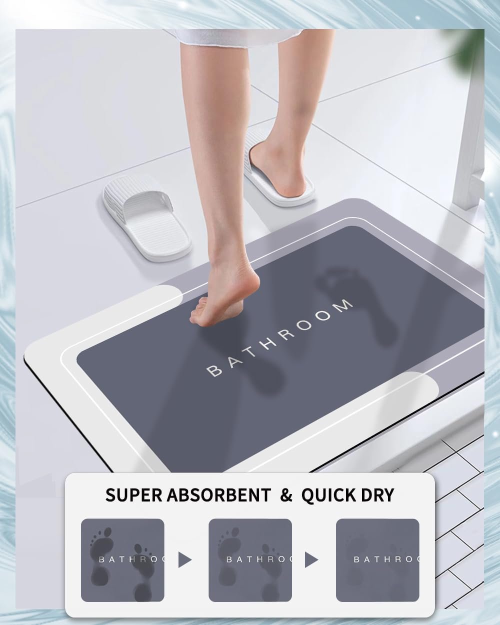 ◕ [Water absorption and quick drying] The bathroom rug is made of 4 layers of technology fusion materials, super adsorption, fast water absorption and instant drying. When you step out of the bathtub or get ready to wash through the sink, it can prevent splashing the floor and keep your feet and bathroom fresh and clean