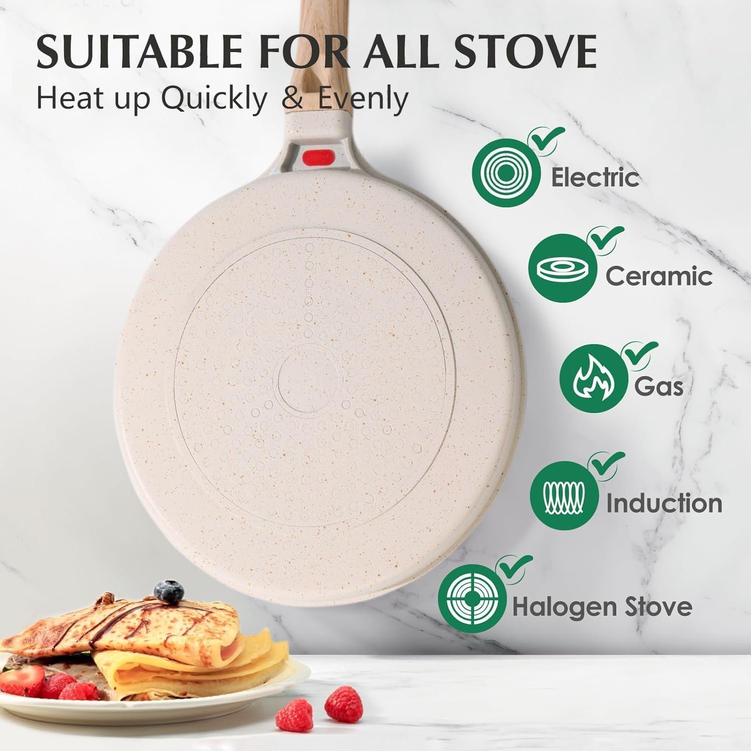 ?� Premium Material: The egg frying pan is made of premium materials, featuring a non-stick Maifan stone coating that heats evenly, saves energy, is not easy to damage, and has a long service life. ?� Practical to Use: The non-stick egg frying pan is compatible with both gas and induction stoves. Ideal for cooking omelets, meatballs, burgers, pancakes, and making four fried eggs at the same time, perfect for preparing breakfast for your family.