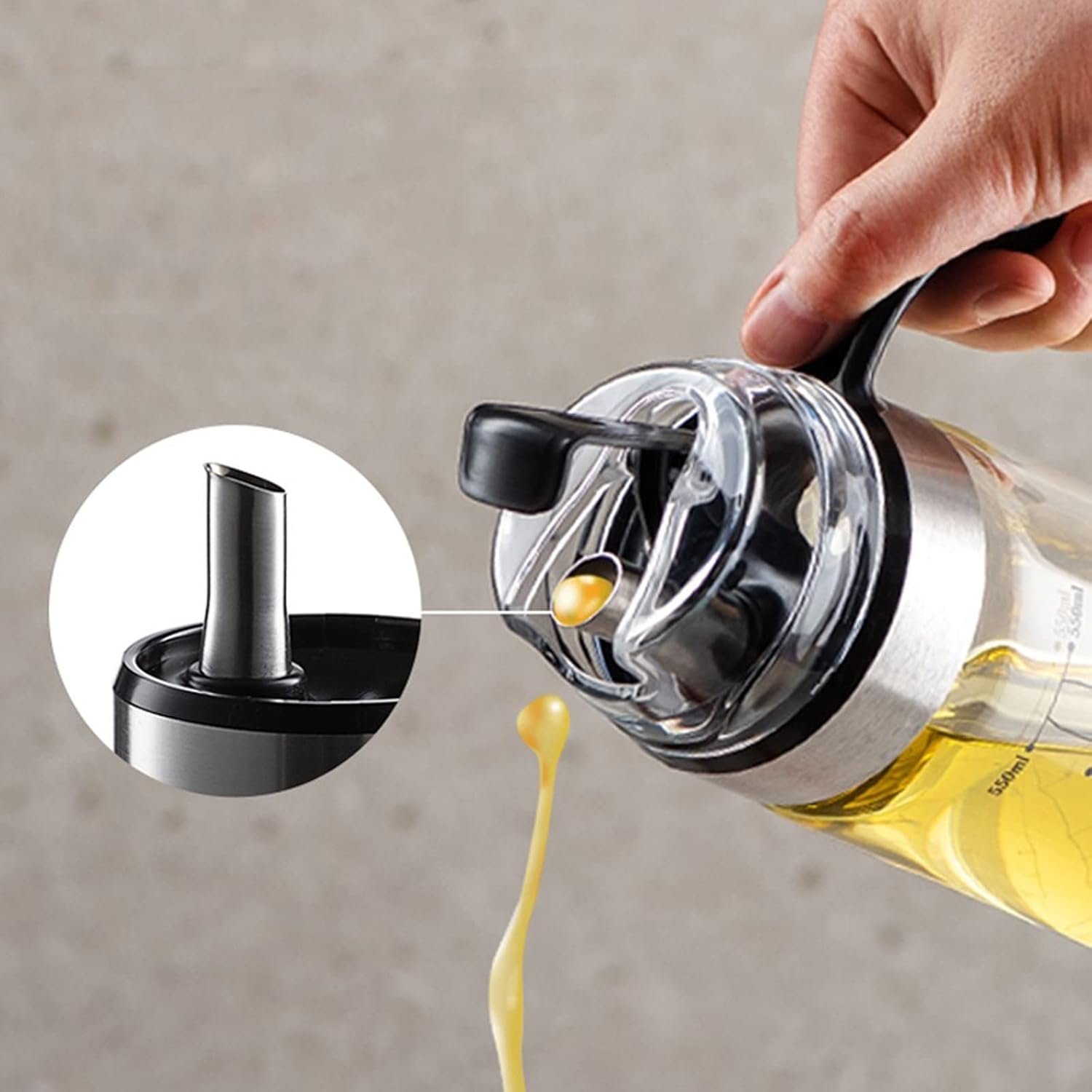 ♠High-quality Materials♠ Made of lead-free high borosilicate glass,this oil bottle has a transparent bottle body,high-temperature resistance.Its grease and handle are made of food-grade stainless steel,transparent texture,smooth and natural,strong and reliable,and can be used for a long time.