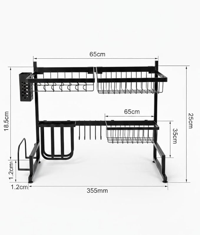 Materia - Made of quality advanced 304 stainless steel with baking finish surface, easy to clean and rust free. Baking finish surface keeps the dish rack scratch resistance and lasting for a long time. High capacity:The drying rack can could hold bowls, plates, vegetables, fruits, knives, forks, spoons, pans, detergent. Save space:The versatile dish is perfect to utilize the empty space above sinks. The water drips directly into the sink will not wet the countertop, keeping your kitchen clean and fresh. Multi Purpose Kitchen - the sink dish drainer can not only air-dry washed bowls, pot, fry pans, tableware, cookware, etc., but also be used as a colander for . Card-position design: better draining effect. A certain gap between the dish and the dish can achieve quick draining and less likely to breed bacteria.