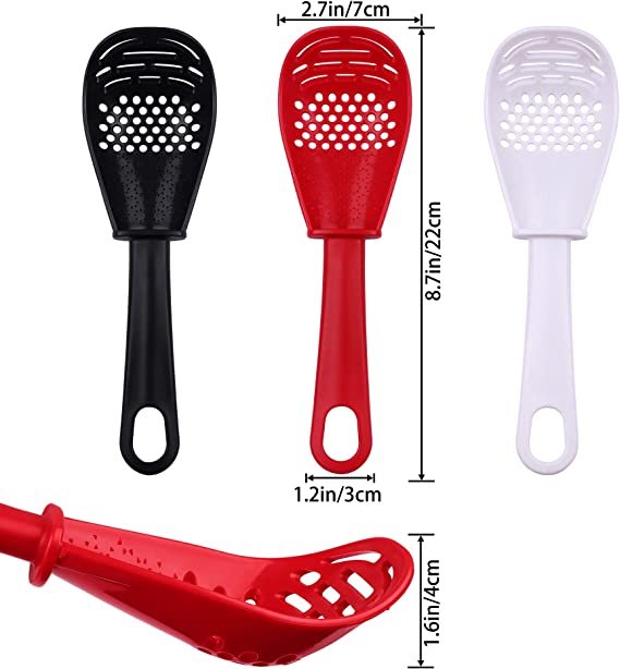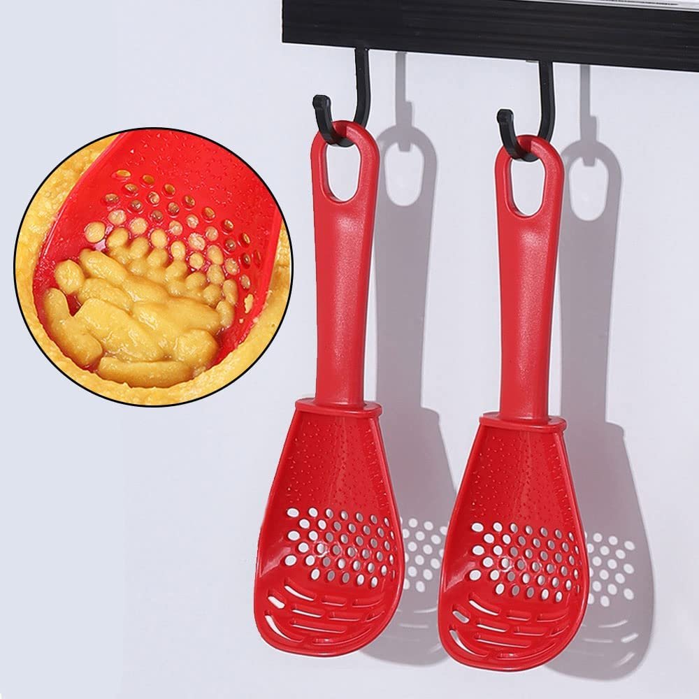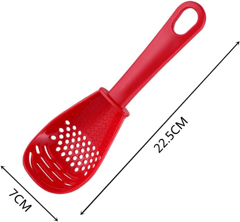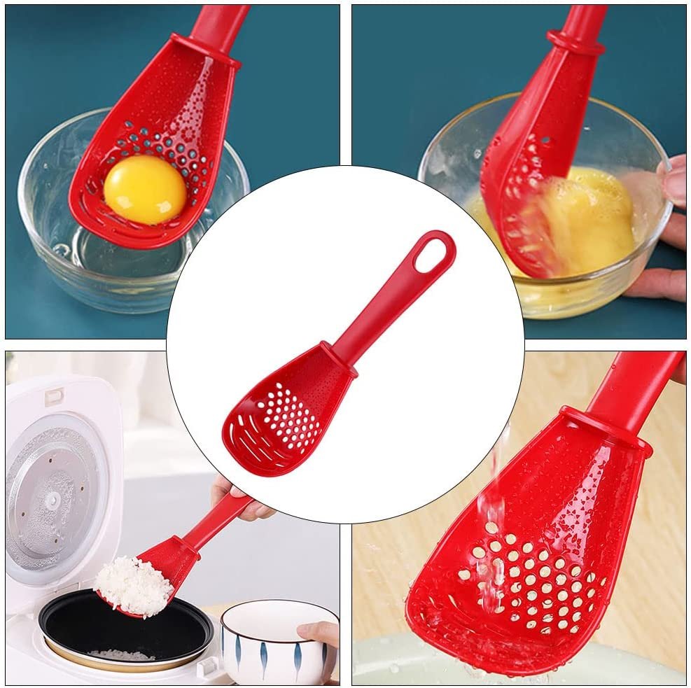 Wide application: The spoon can be used for cooking, draining spoon, grinding and pressing garlic paste, potato masher, bean masher, Eggbeater the small hole design can be applied as a colander, Use it with other tableware to help you make delicious meals.