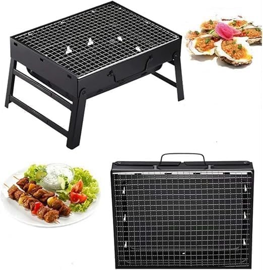 DURABLE & RELIABLE: The Folding BBQ Grill Grill Grill Is Made Of High Hardness Metal, Which Is Strong, Stable, And Resistant To High Temperature And Scratches, Ensuring That Can Be Used For A Long Time. Thick pull type baking mesh, more convenient to add charcoal. Ventilation Design: There are ventilation holes on both sides of the charcoal grill, allowing the air to fully rotate, effectively control the grill temperature and accelerate the charcoal burning, allowing to cook food faster. FOLDABLE DESIGN: Lightweight and compact outdoor foldable grill The grill also has a heat-resistant handle, which makes it very convenient to store and carry. EASY TO USE: No tools required, open the grill and install the grill. You can start cooking anytime, anywhere and easily enjoy outdoor grilling. Multipurpose: small size grill with unfolded dimension suitable for outdoor BBQ 3 to 5 people, very suitable for outdoor barbecue, picnics, camping, family party, beaches, car trips. You can cook a variety of meats, seafood and vegetables, allowing you to enjoy safe and healthy flavors even outdoors.