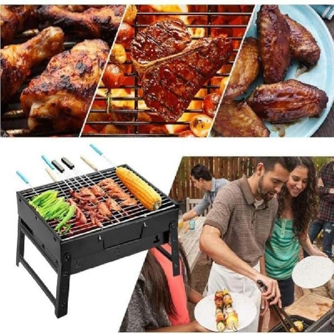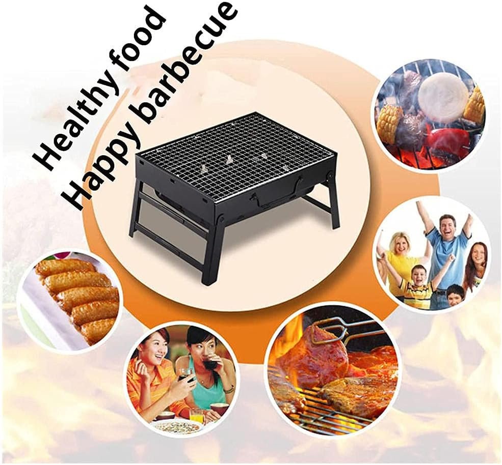 DURABLE & RELIABLE: The Folding BBQ Grill Grill Grill Is Made Of High Hardness Metal, Which Is Strong, Stable, And Resistant To High Temperature And Scratches, Ensuring That Can Be Used For A Long Time. Thick pull type baking mesh, more convenient to add charcoal. Ventilation Design: There are ventilation holes on both sides of the charcoal grill, allowing the air to fully rotate, effectively control the grill temperature and accelerate the charcoal burning, allowing to cook food faster. FOLDABLE DESIGN: Lightweight and compact outdoor foldable grill The grill also has a heat-resistant handle, which makes it very convenient to store and carry. EASY TO USE: No tools required, open the grill and install the grill. You can start cooking anytime, anywhere and easily enjoy outdoor grilling. Multipurpose: small size grill with unfolded dimension suitable for outdoor BBQ 3 to 5 people, very suitable for outdoor barbecue, picnics, camping, family party, beaches, car trips. You can cook a variety of meats, seafood and vegetables, allowing you to enjoy safe and healthy flavors even outdoors.