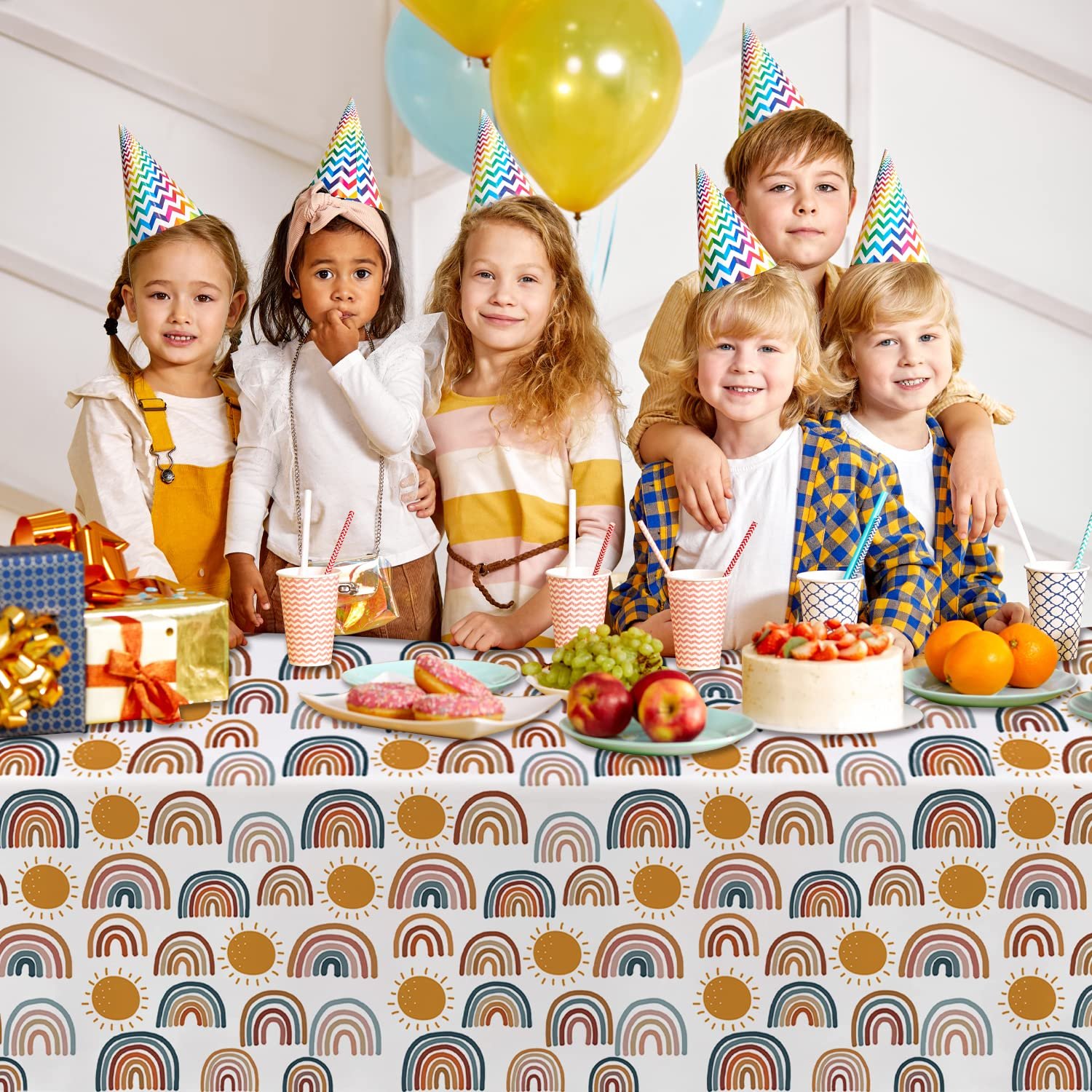 【Durable Quality】: The tablecloth is made of thick, high-quality polyethylene plastic with precise printing technology. These colorful tablecloths are reusable, waterproof, durable, non-toxic, and odorless, making them a perfect choice for your birthday party. 【Easy to Clean】The rainbow-themed tablecloths keep your table clean from drink and food residue. They're also easy to clean after the party—just dispose of them or wipe them down and store them for next time.