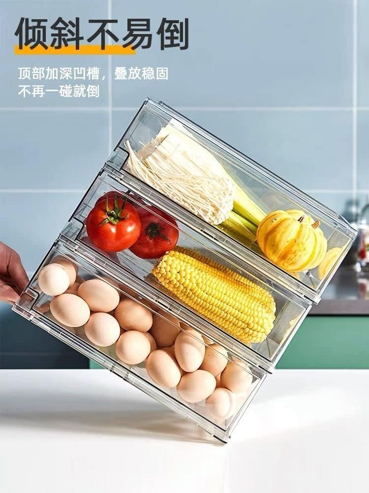1. Innovative drawer storage box, suitable for most standard size fridge shelves, can store eggs, vegetables, seafood, fruits and other foods fridge tidy and clean. 2. Department design: equipped with splitter plate, if you need to Separate the food, you can insert the plate to insulate the food and avoid confusion. 3. Strong and wear: made of high-quality PS + ABS material, strong, wear and long life. 4, Space Saving: the storage basket is not necessarily installed on the splitter plate, can be used alone by removing the drawer holder, can be stacked to increase the storage space of the refrigerator.