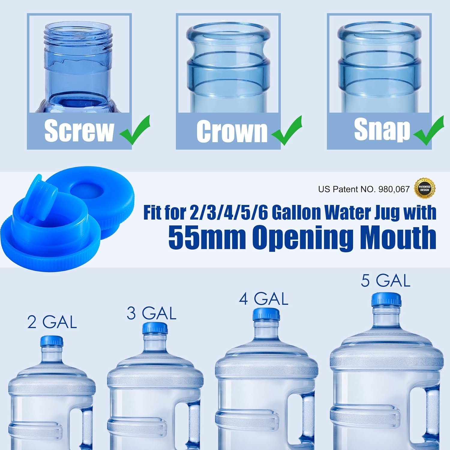 [Leak-Proof Water Pitcher Lids] These lids fit 3/5 gallon pitchers with standard/screw/crown caps measuring 5.5-6.0mm and feature an improved seal, rigorously tested for 7 days upside down without leaks. [Reusable & Less Plastic] Save money and reduce waste with our durable, reusable silicone lid—a lifetime replacement for single-use plastic lids!