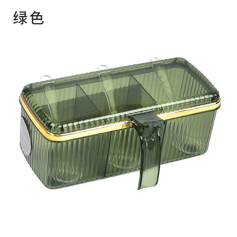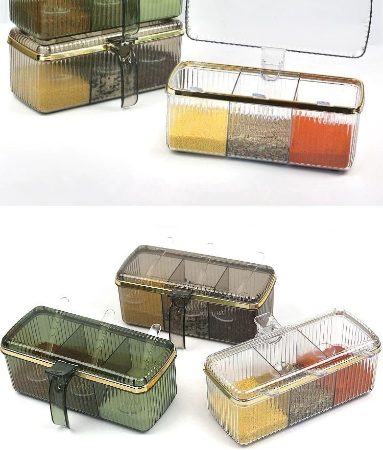1. Perfect for organizing storage in the kitchen. Can be used to hold a variety of condiments: pepper, sugar, salt, spices, chicken broth powder, corn starch and more. 2. The transparent seasoning box, it is easier for you to see what is in every spice jar. 3. Convenience: Keep your kitchen organized and tidy by storing spices, close to the hand and easy to clean.