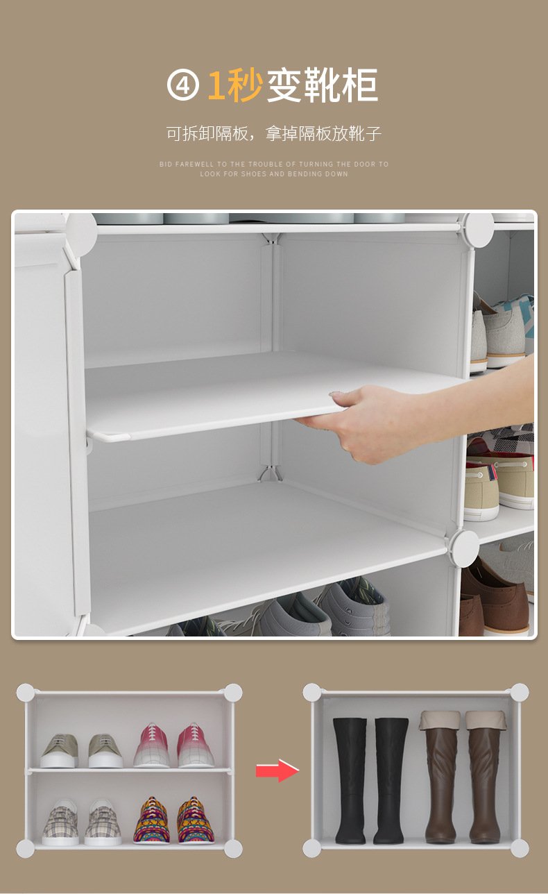 MULTI PURPOSE CABINET: each of the cubbies can store 2 pairs of shoes;the modular closet can be used to store not only shoes but clothes, accessories, bedding and lining, CDs and DVDs, toys, cables.