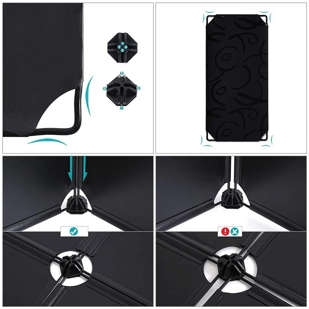 CONNECTORS & MAINTENANCE: the connectors are made of sturdy ABS to securely join the panels; the unit is waterproofed and dust-resistant; panels are easy to clean with a damp cloth; doors feature hole handles for easy opening as well as air flow; new direction, any question while put it together, please feel free to contact us