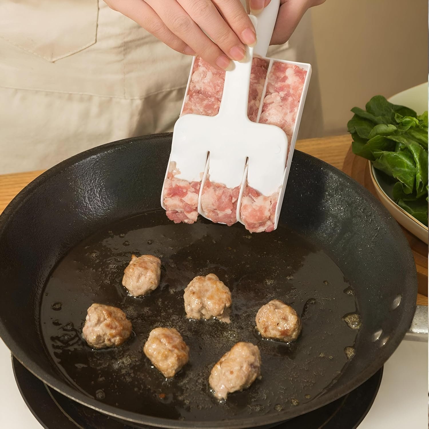 [Upper quality] Easy to clean and make even the meat balls easily, the meat balls making machine is made of high -quality polypropylene, soft, the food will not stick to it. [ Multiple Functions] 3 shovel design, can make three meatballs at a time, the effect of spoon making meatballs in forming meat balls is good, with matching special card shovel.