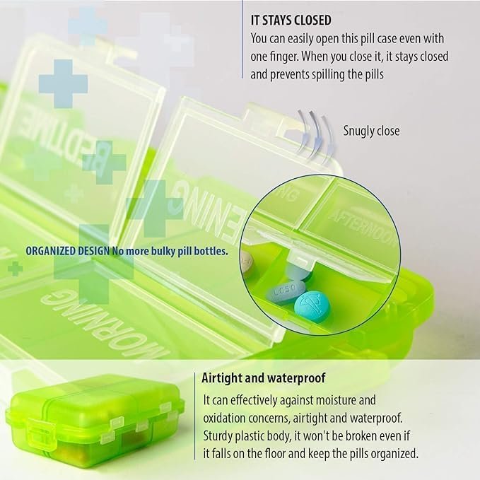 ★SAFE DESIGN - The medicine box adopts double safety clip design, with external safety clasp and interior safety clip for each compartment. Easy to open and close, the inner caps can be completely removed to fill or clean up Design prevents seed from falling or dust during daily use. Good medicine organizer at home or travel.