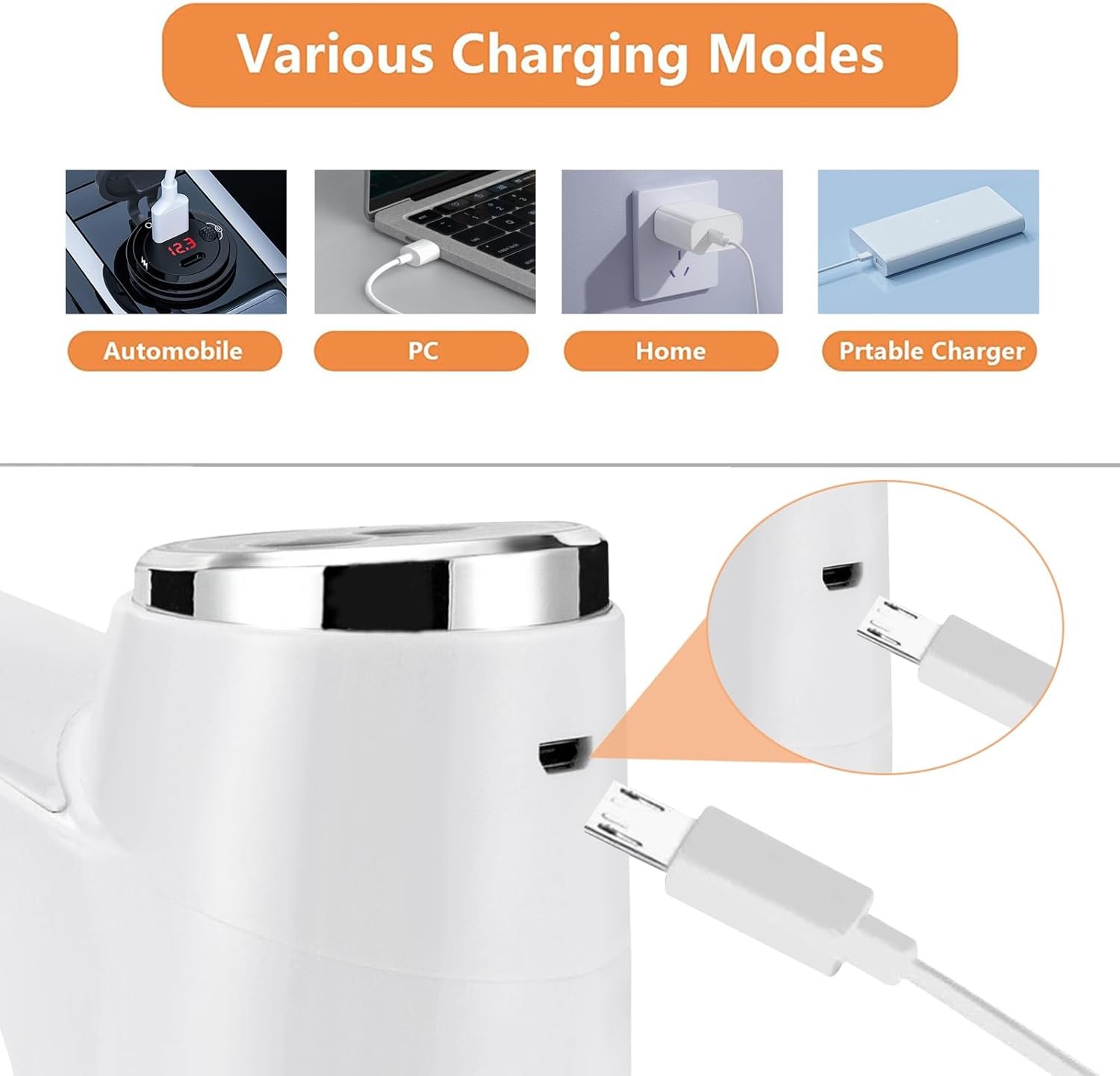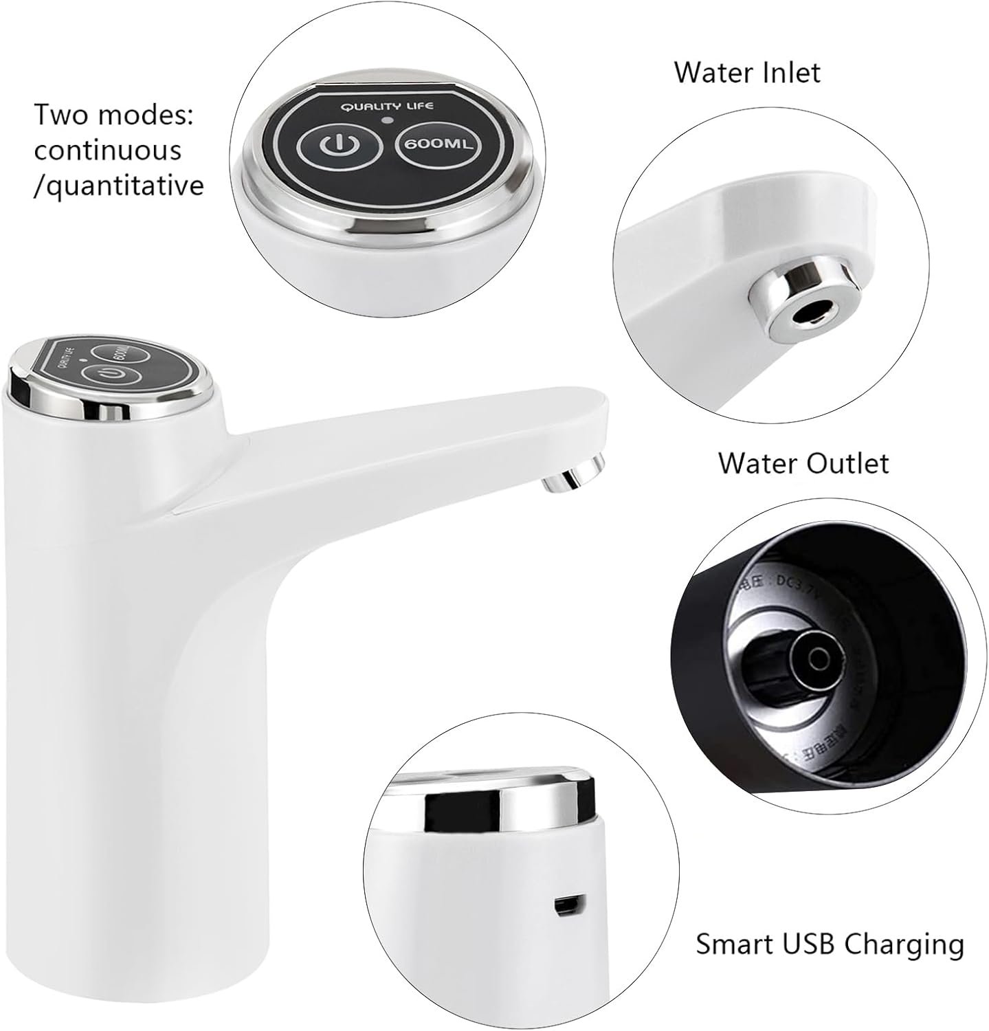 DURABLE MATERIAL Made of high quality ABS housing and silicone hose by injection molding process, this product features high abrasion resistance, light weight and durable quality. Compact and lightweight: with compact dimensions of 5.31 x 5.91 inches and a weight of only 0.51 pounds, this product is easy to carry and is ideal for outdoor use such as moving, travelling and camping. Convenient Use Options The two sensitive buttons on the top allow continuous pumping and a 0.16 gallon quantitative water flow to meet different requirements and save water. Choice of colours: choose between the two colour variants white and black to suit your individual needs. EASY OPERATION With just one push of a button, the water dispenser automatically dispenses water without having to move heavy buckets. Even the elderly and children can operate the device effortlessly.