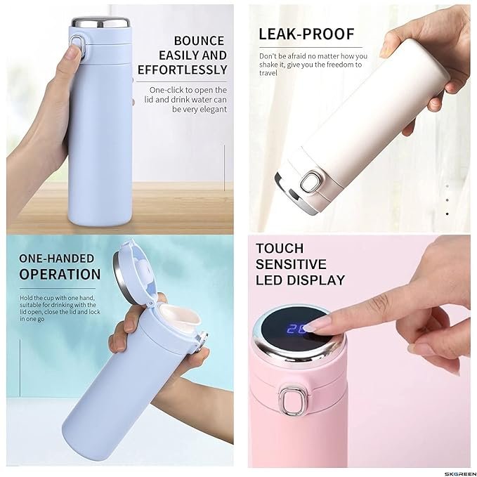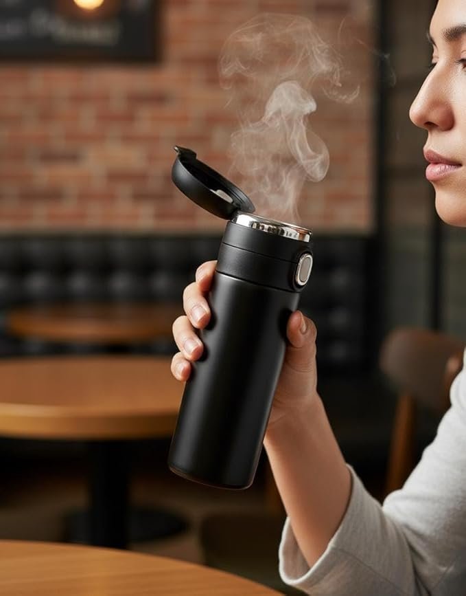 Your Perfect Companion for Every Moment – Keep Your Drink at the Ideal Temperature! Say goodbye to surprises! With this Smart Thermal Bottle, you can always know the temperature of your coffee or tea with a single touch. This mug combines innovative technology with excellent thermal performance in a compact and sleek design. Whether you are at the office, the gym, or traveling, this thermos ensures your drink is exactly how you want it.