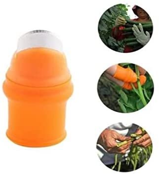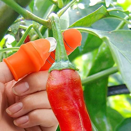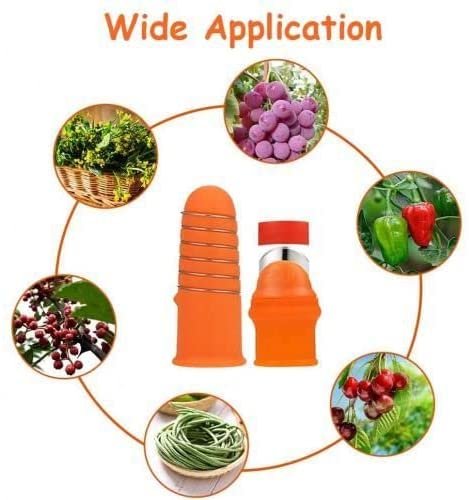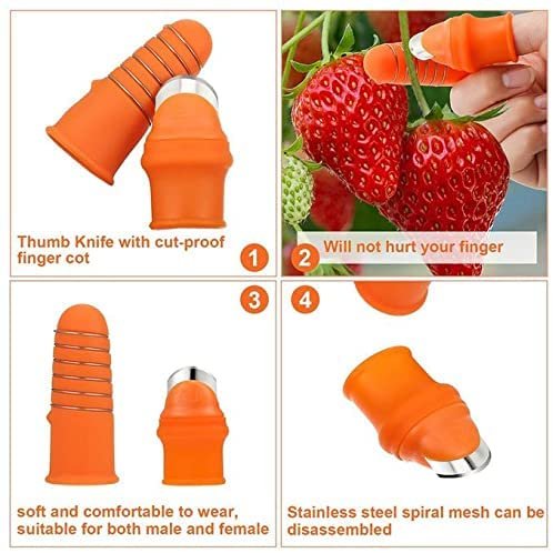 It is inevitable to use both hands when picking fresh produce from your garden. If you use your fingers for a long time, it will damage your fingers and get infected. With our multi-function gardening thumb knife, its smart design will enable you to harvest your fresh pick without hassle and inconvenience! Ergonomic silicone thumb knife fits snugly on the fingers and perfectly protects your nails, fingers from harm, prevents nail stains, and avoids finger infection. Made of grade A imported stainless steel with Silicone protector, sharp and easy to cut, time-saving, and labor-saving. Our blades are very sharp, so the thumb knife and finger sleeve must be used together, otherwise, it will easily hurt your hand. The thumb cutter is suitable for picking fruits, herbs, plants, and vegetables like strawberries, tomatoes, beans, eggplants, cucumbers, etc. It can also be used to do some gardening and trimming work. What You Will Get: 1 thumb knife, 1 cutting finger sleeve What's in the box 1 X Thumb Knife 1 X Silicon Finger Sleeve for Protection
