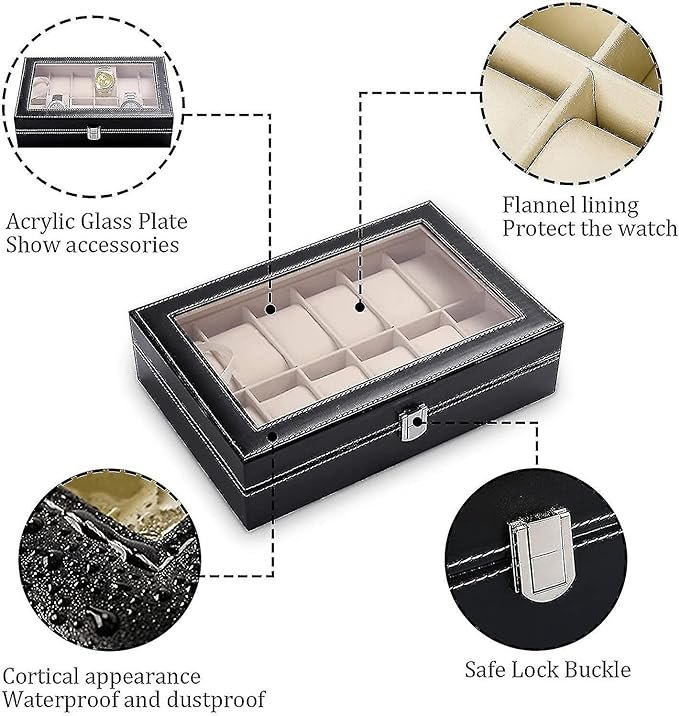 The watch organizer box is the perfect solution for watch collectors. With its stylish and practical design, this case allows you to keep your watches safe and organized. The box features ten dedicated watch compartments, allowing you to keep a wide range of watches