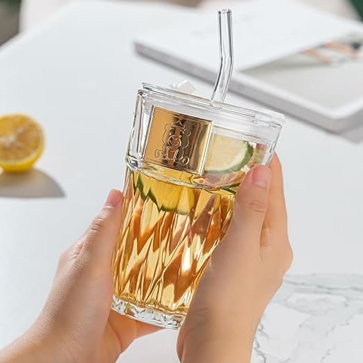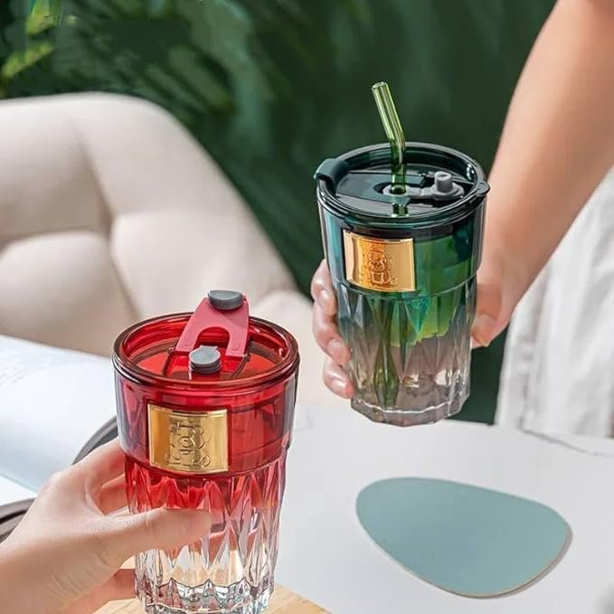 Water Glass Iced Coffee Cups with Straw and Lid Sealed Carry on Straw Prevents Scalding Coffee Cup with Lid Can be used both indoors and outdoors 420 ml