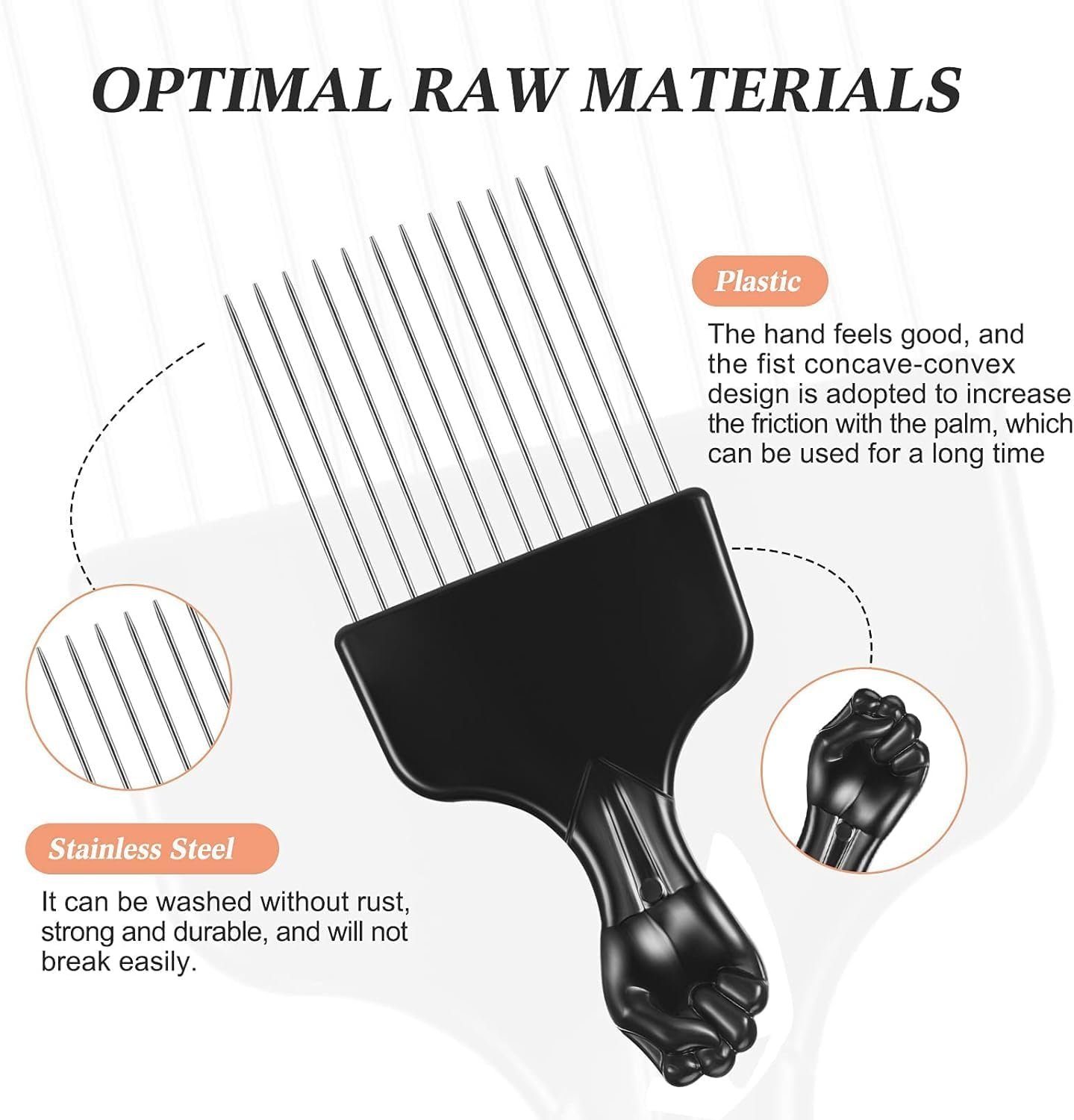 Premium Materials: This comb is made of high-quality plastic and stainless steel, which is durable and strong, rust-resistant, and won't tarnish easily. Wide-Tooth Design: The African comb features a wide-tooth design with a smooth surface and rounded tips to protect your hair from being pulled.