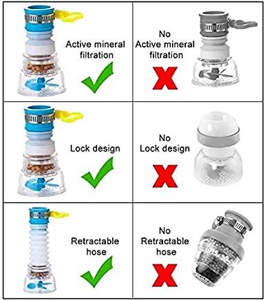 Specification Material: Food-grade ABS plastic Size Max: 2.8 * 4.5 *13.5 cm Mini: 2.8 *3 * 10 cm Range of Application: Diameter in 16~26mm Water Tap Feature Anti-splash: The rotation of the blades and the dense distribution of water outlets disperse the water flow force, and the water will not splash. Increase the washing area, spray evenly, and effectively save water. The medical stone filters the water, and the water quality is better. It is an ideal small gadget for kitchen and bathroom use. High quality: The splash-proof filter is made from safe and durable material. Tip: If it is difficult to install, you can put it in hot water for a few seconds to soften before installing it. Package Included 1 x faucet water filter