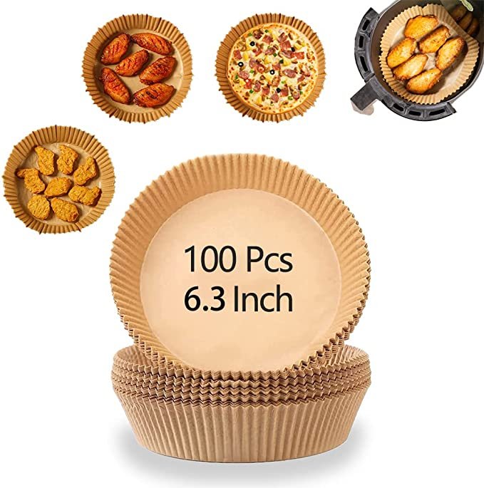 Baking Helper: Including 100PCS disposable paper liners, sufficient quantity to meet your daily cooking and baking needs. Non-Stick air fryer paper liners oil absorption and heat insulation are more durable, absorb excess fat from food, and can also be made into low-fat biscuits in daily life.