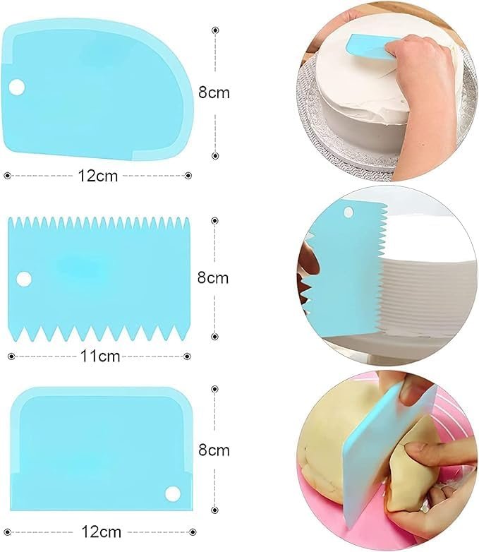 Food-Safe Material: Made of high-quality PP plastic to ensure your health and safety. Extremely durable, reusable, and easy to use. Perfect for Cake Decorating: Extremely easy to use, even if you're an experienced baker or chef. You can create your desired cakes and pastries with this scraper set, making you look like a pro.