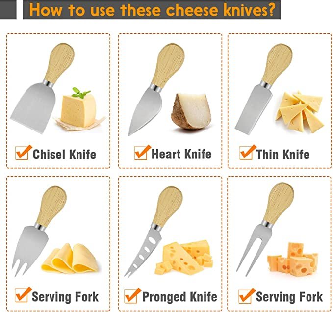 Widely Use - The complete cheese knives set is designed to cut, slice, shave, serve, and spread all kinds of hard and soft cheese.